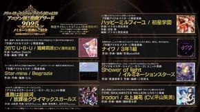 学園:36℃ U・B・U(姫崎莉波)、Star-mine(Begrazia)、ハッピーミルフィーユ(初星学園)、ナイワ(3年1組)