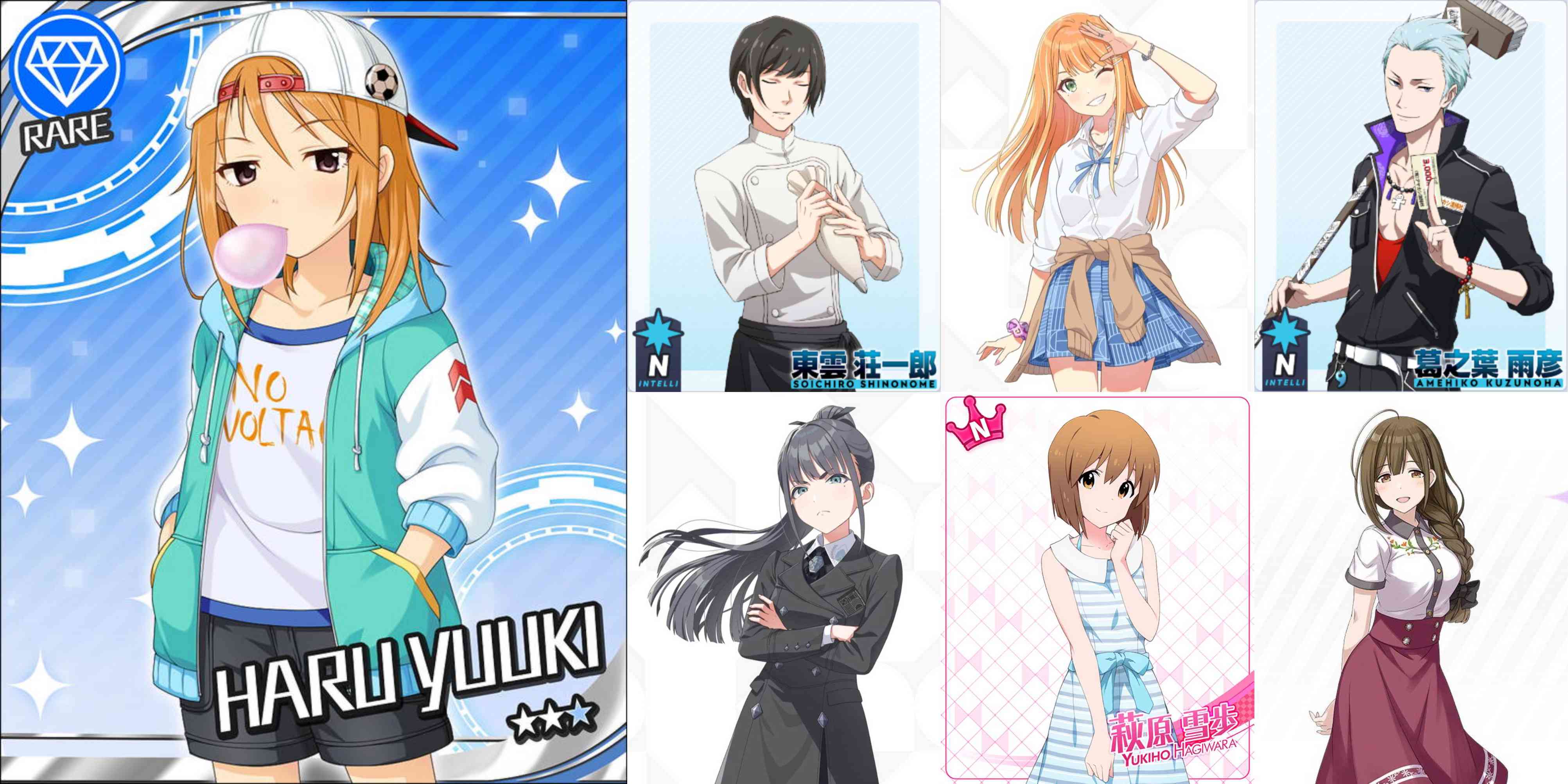 思い付く範囲の晴れアイドルを挙げてみる。スレ画のデレの結城晴、同じくデレの小日向美穂(小"日向")、ミリの木下ひなた(ひなた=日向)、Mの天道輝(お天道様)。