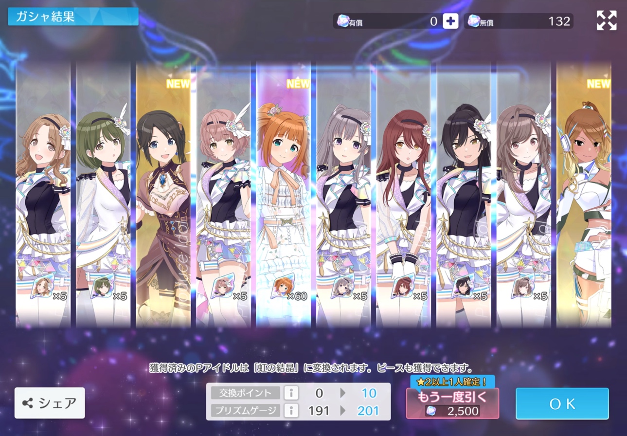 ちゃんみおは確か50連目くらい(うまくスクショ撮れてなかった)