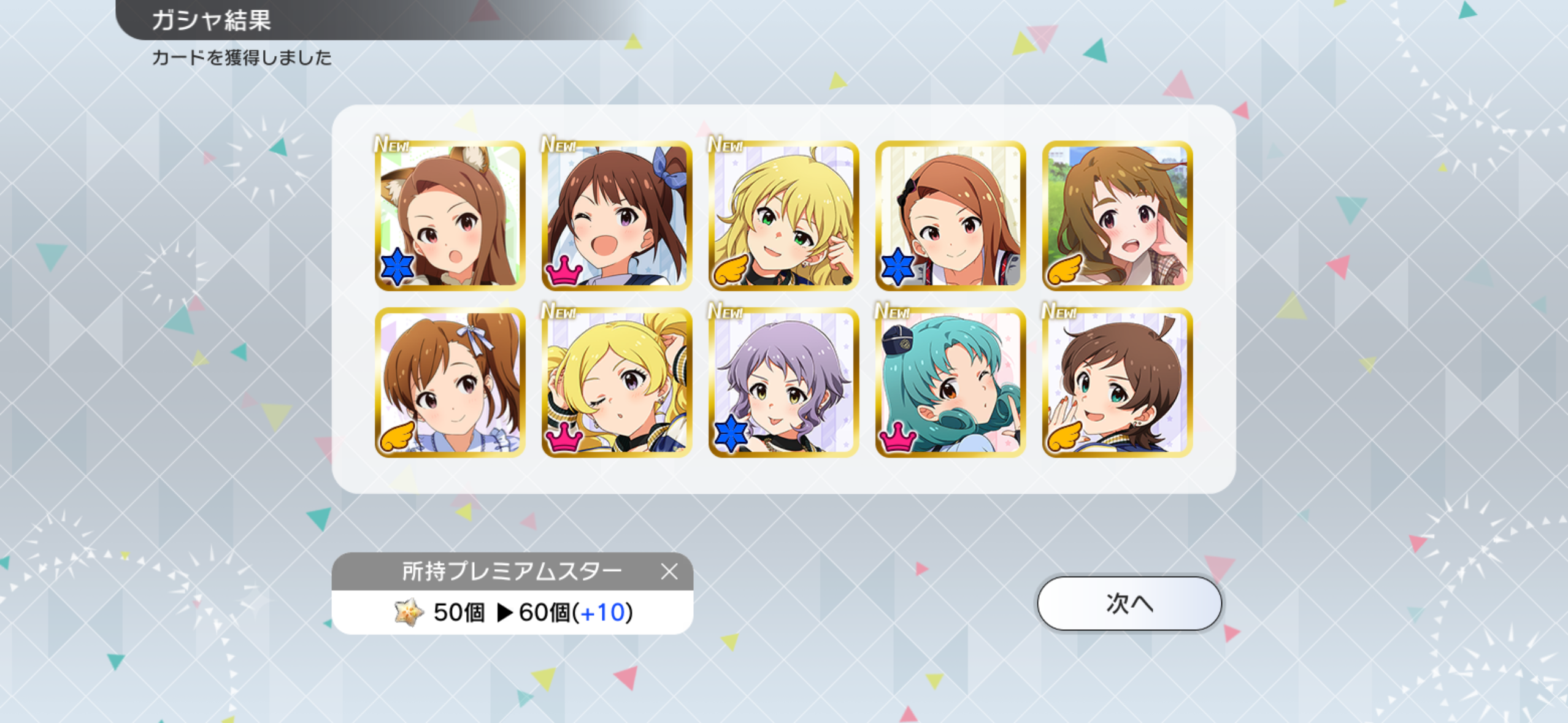 久しぶりに立ち上げてみたら無償石でも引けるのか!と、デイリーミッションで石を貯めて10連分に届いたので回してみた