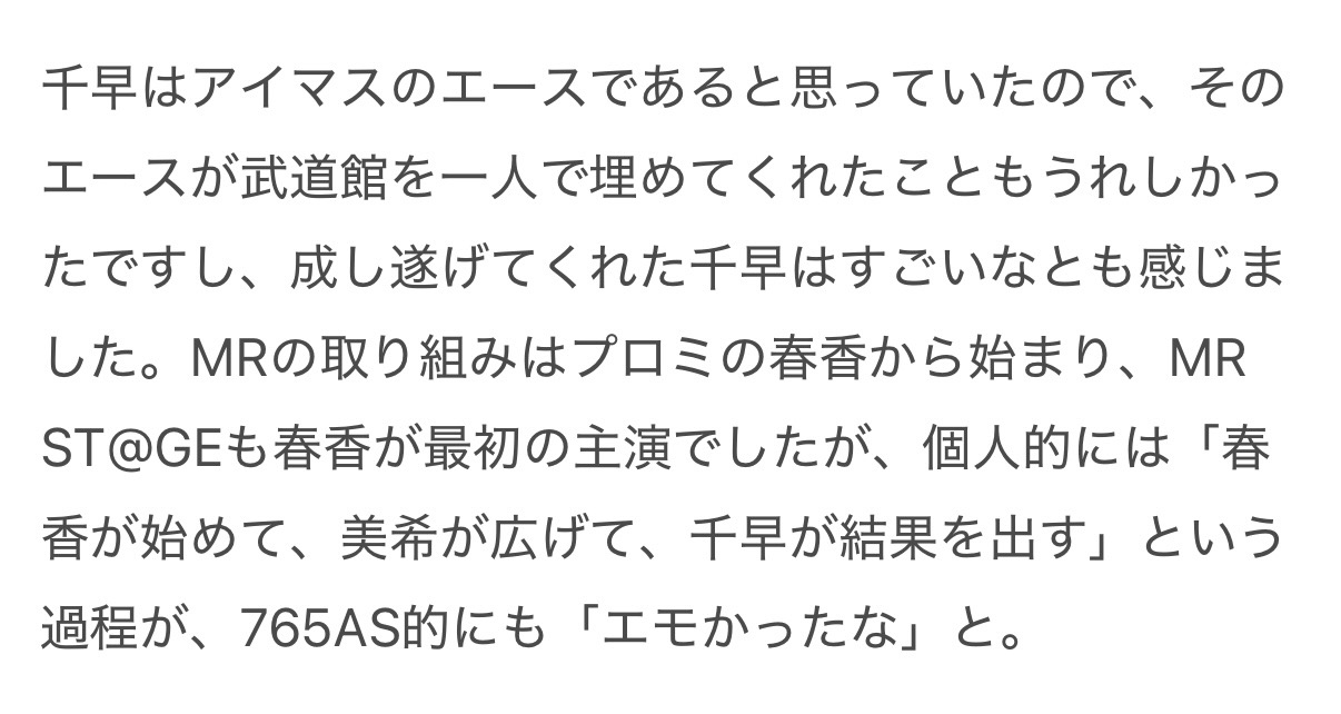 「春香が始めて、美希が広げて、千早が結果を出す」