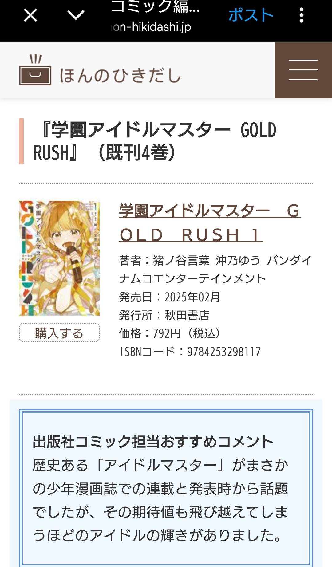 週刊少年チャンピオン連載『学園アイドルマスター GOLD RUSH』のネタバレありの感想スレです