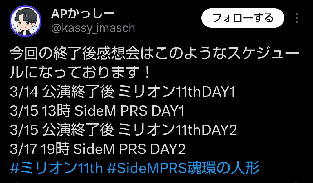 日程:2026/03/21(土) 11:00~(予定)