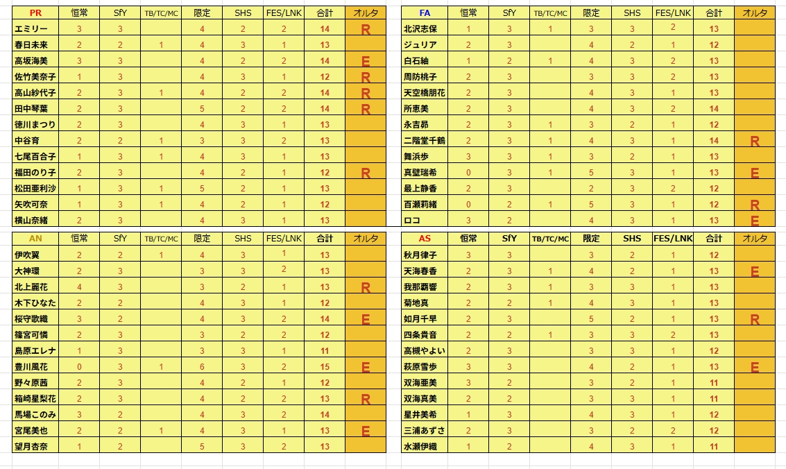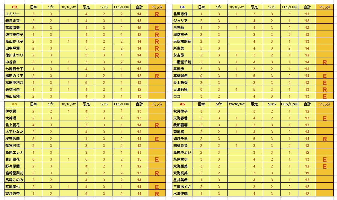 静香(ライブ出演1日目&Faはオルタ実装が少ない)