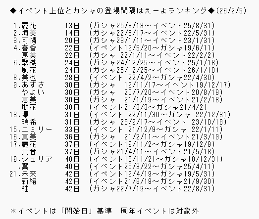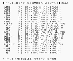 ◆ガシャSSRの間が開いてるアイドル総合トップ10(26/4/9)