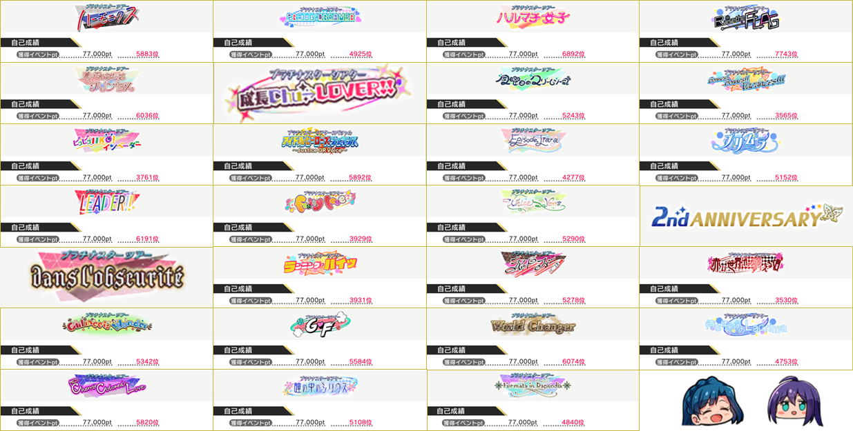アニバ、性徴中、ドンロビュは72000ptになってない所に愛を感じる。