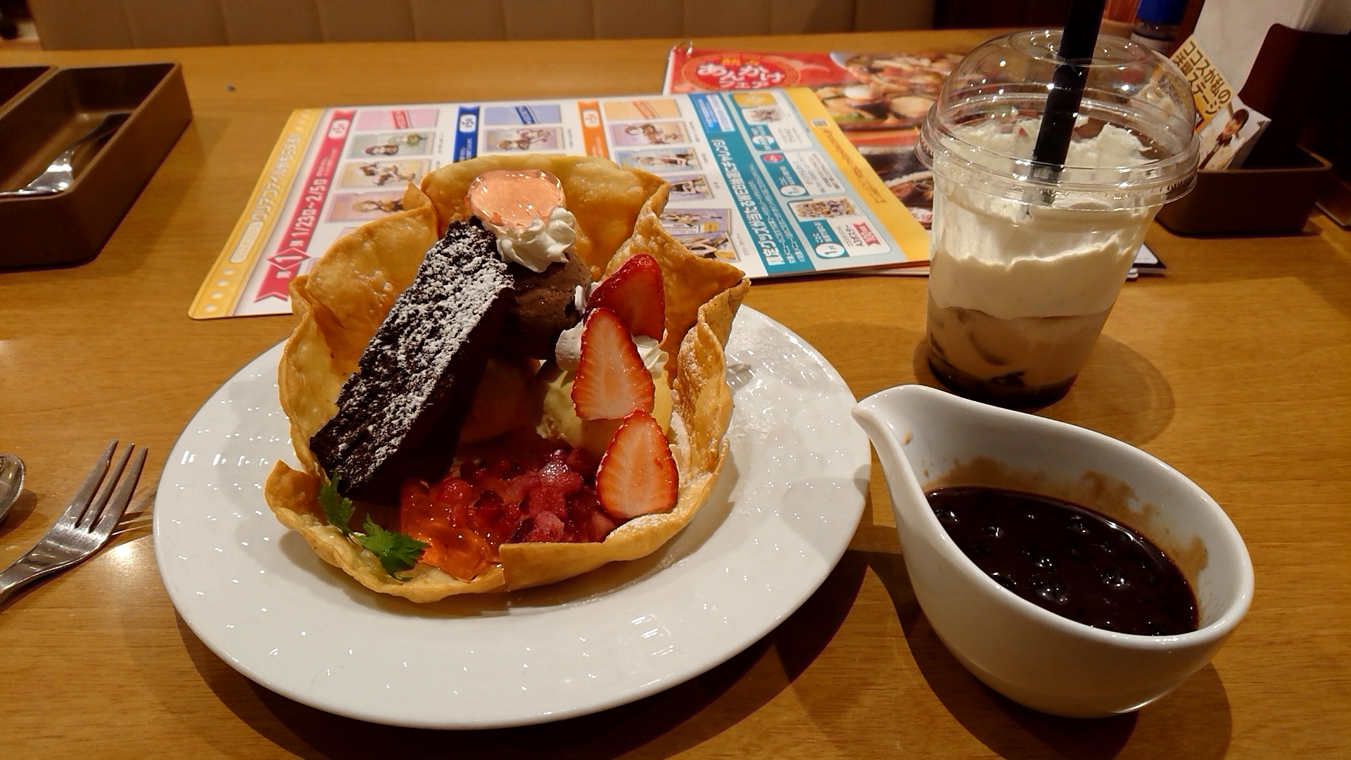イチゴとガトーショコラ、アイスが3玉も乗ってて、デザートとしてはボリューミィ。