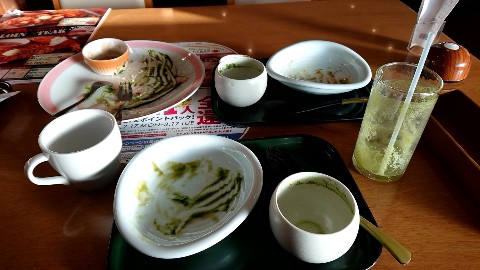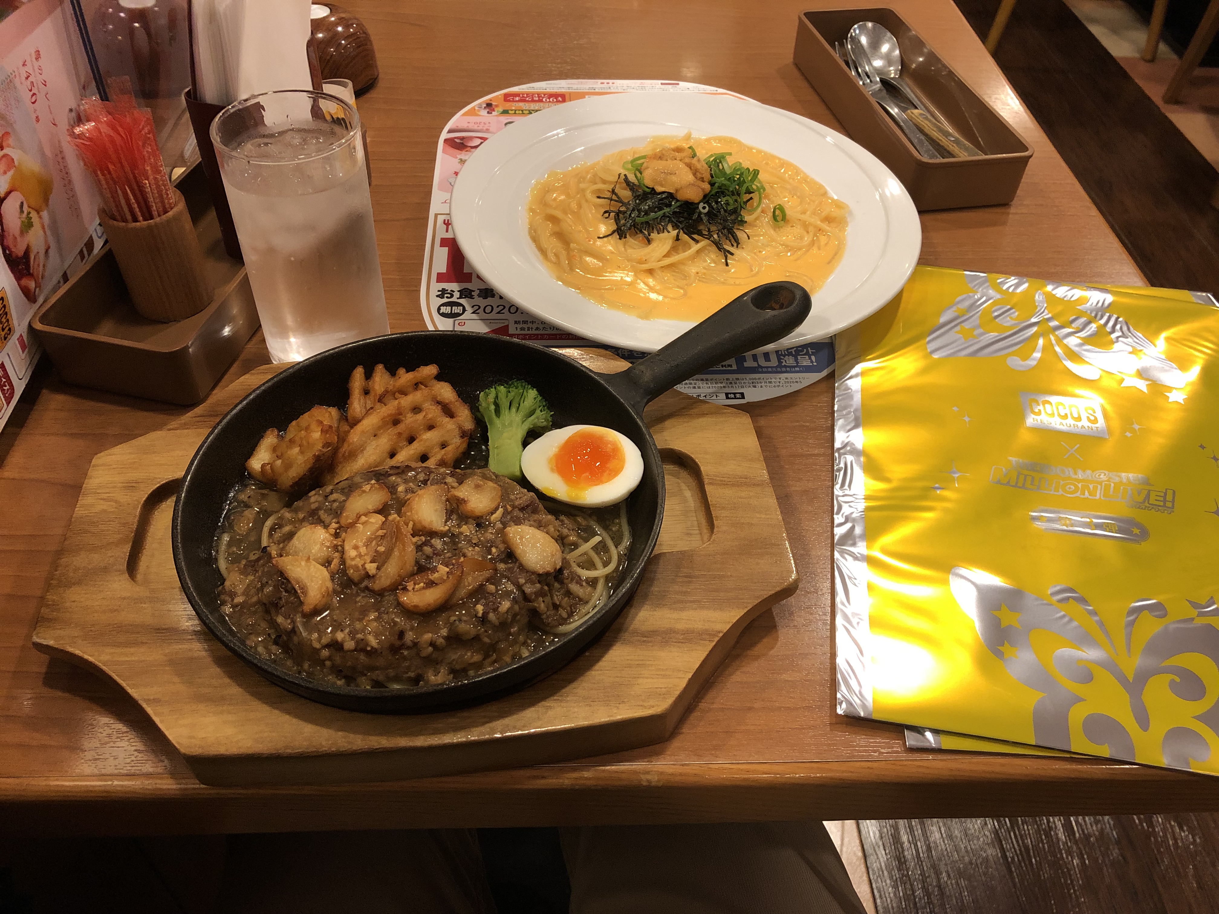 今日は第2段のクリアファイルを貰いに同じ店に行ったが、今回は店員が違う影響かまとめてクリアファイルを5枚持ってきてくれた(以前は一枚ずつ料理と一緒に持ってきたが、今回は