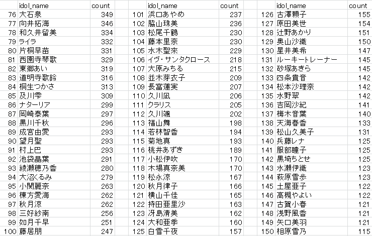 この順位だけだと前回総選挙で躍進した沙理奈さんが下にいるから結局どの程度参考になるやら