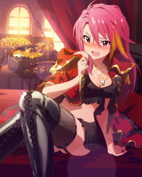 上半身はカッチリ着込んでるのに胸は主張してくるし、下半身は「見せつけてるのか」って言いたくなるふとももを晒してるんだけどさ。