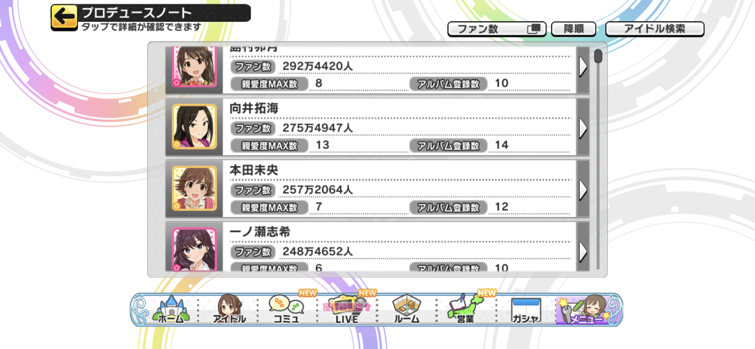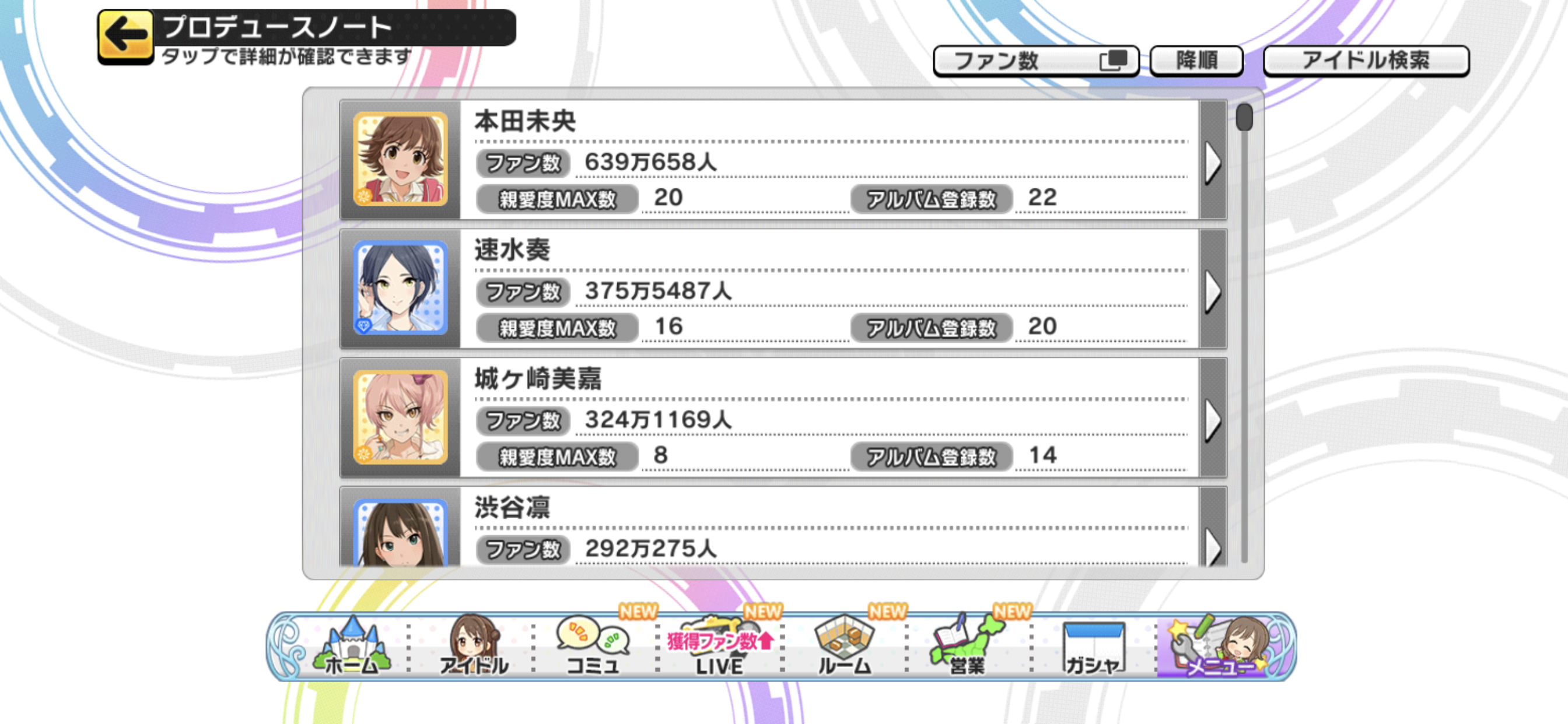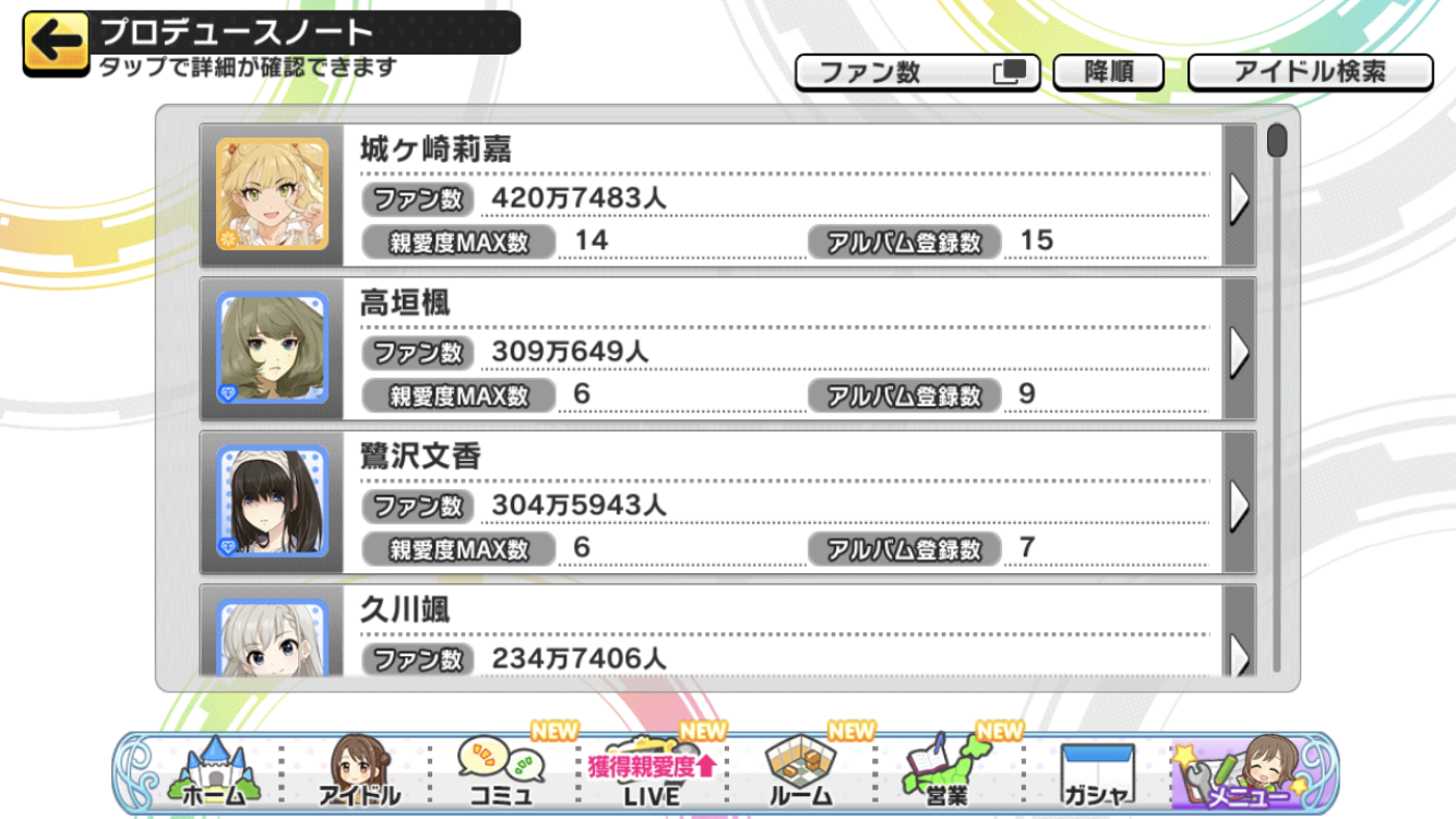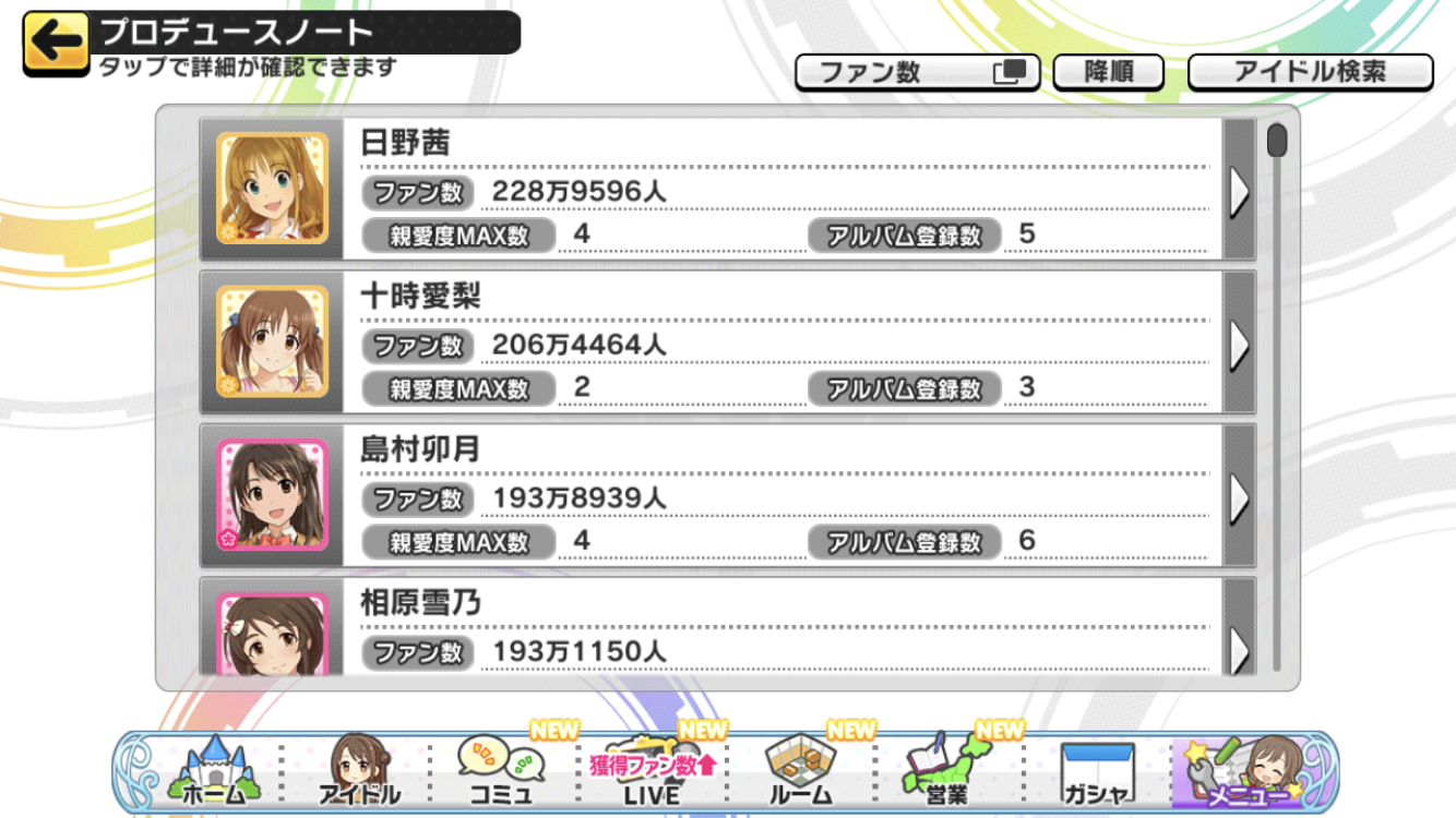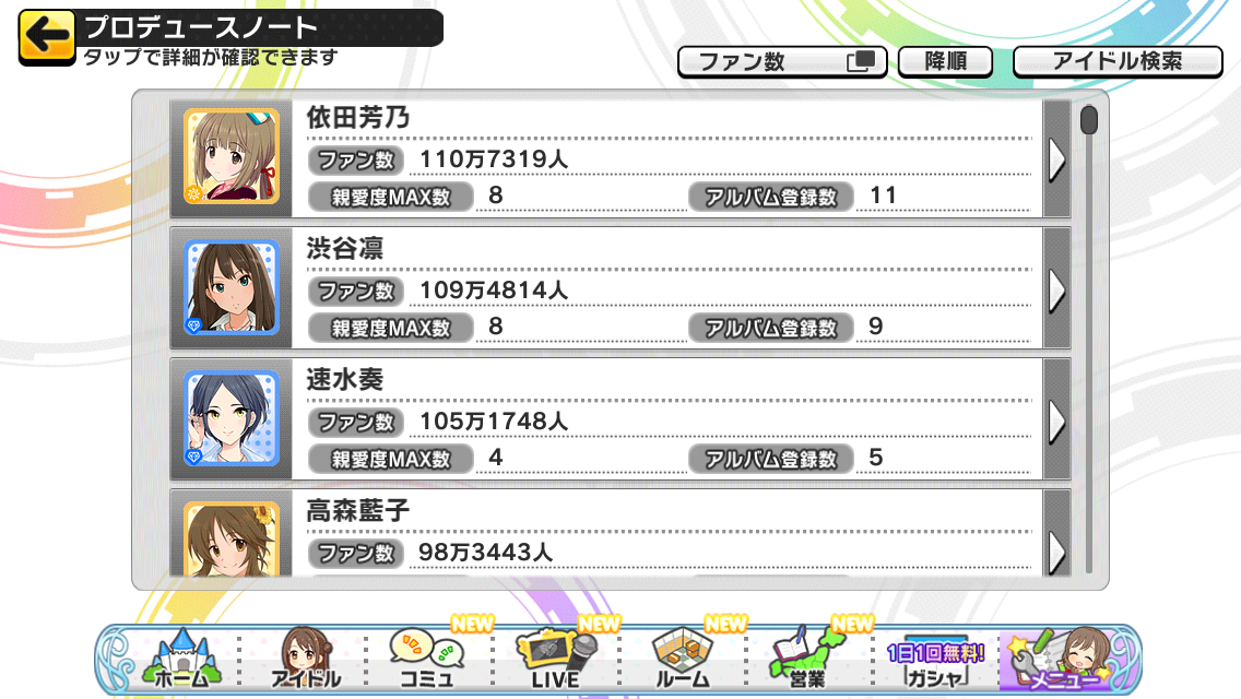 デレステのファン数2~5位から担当を当てるスレ