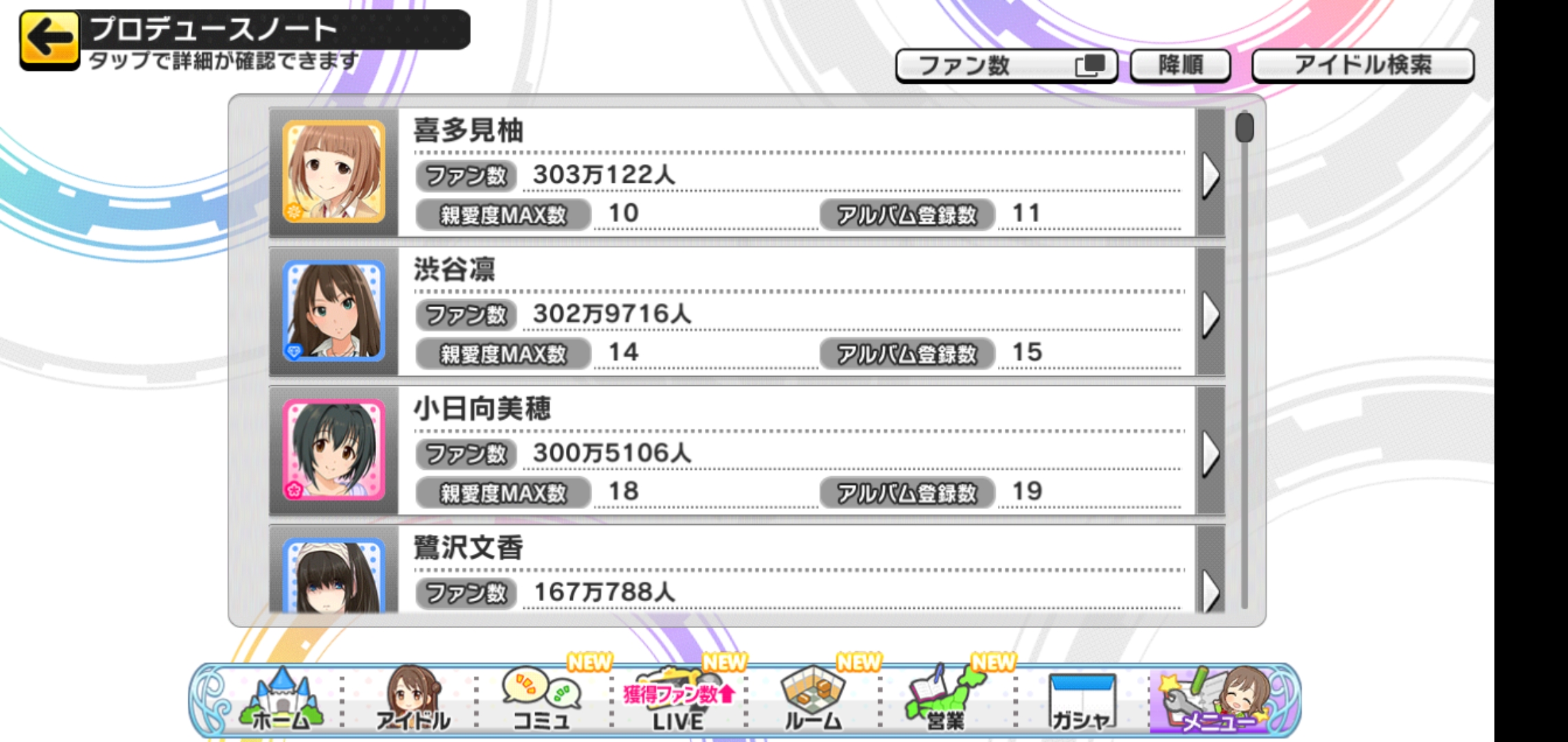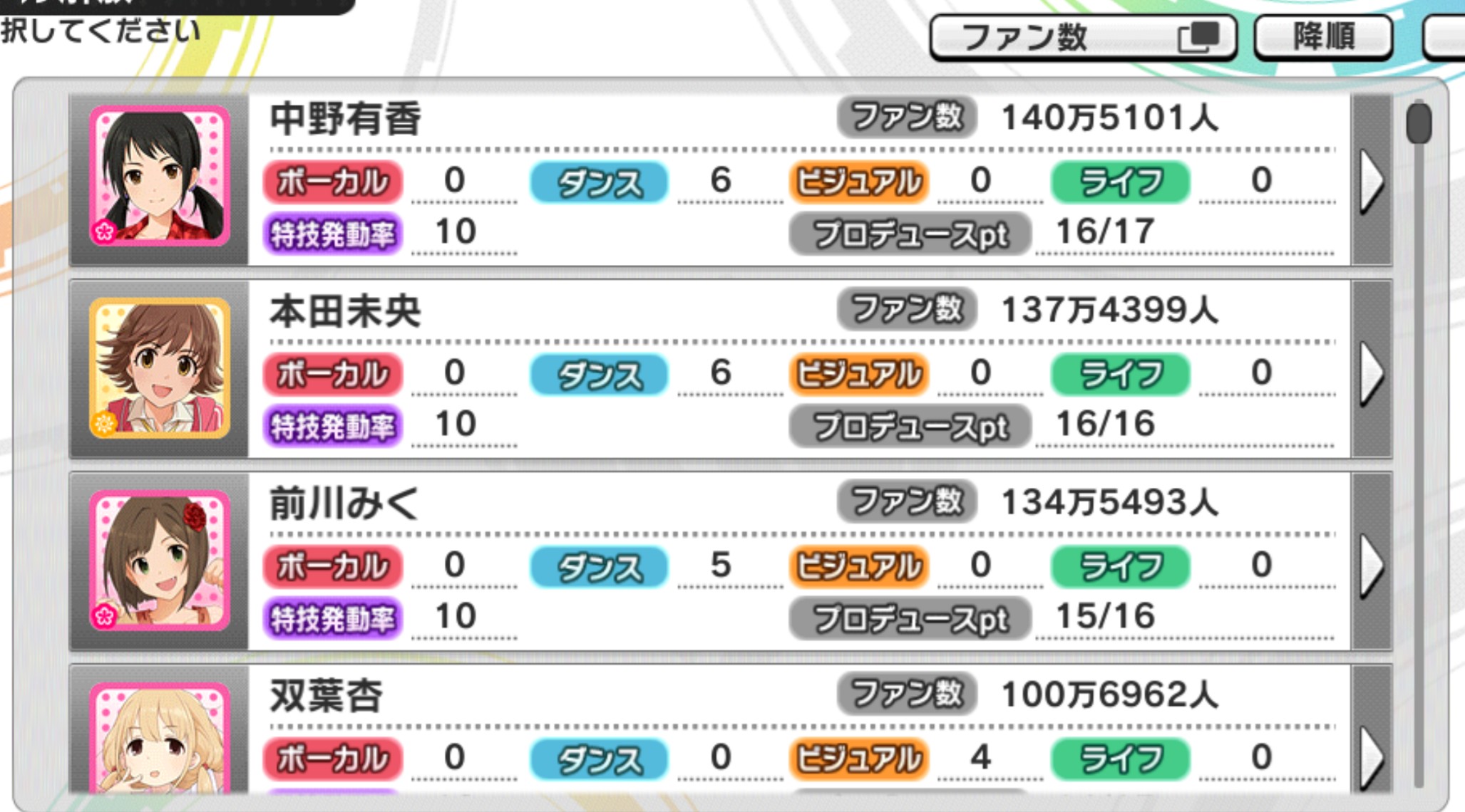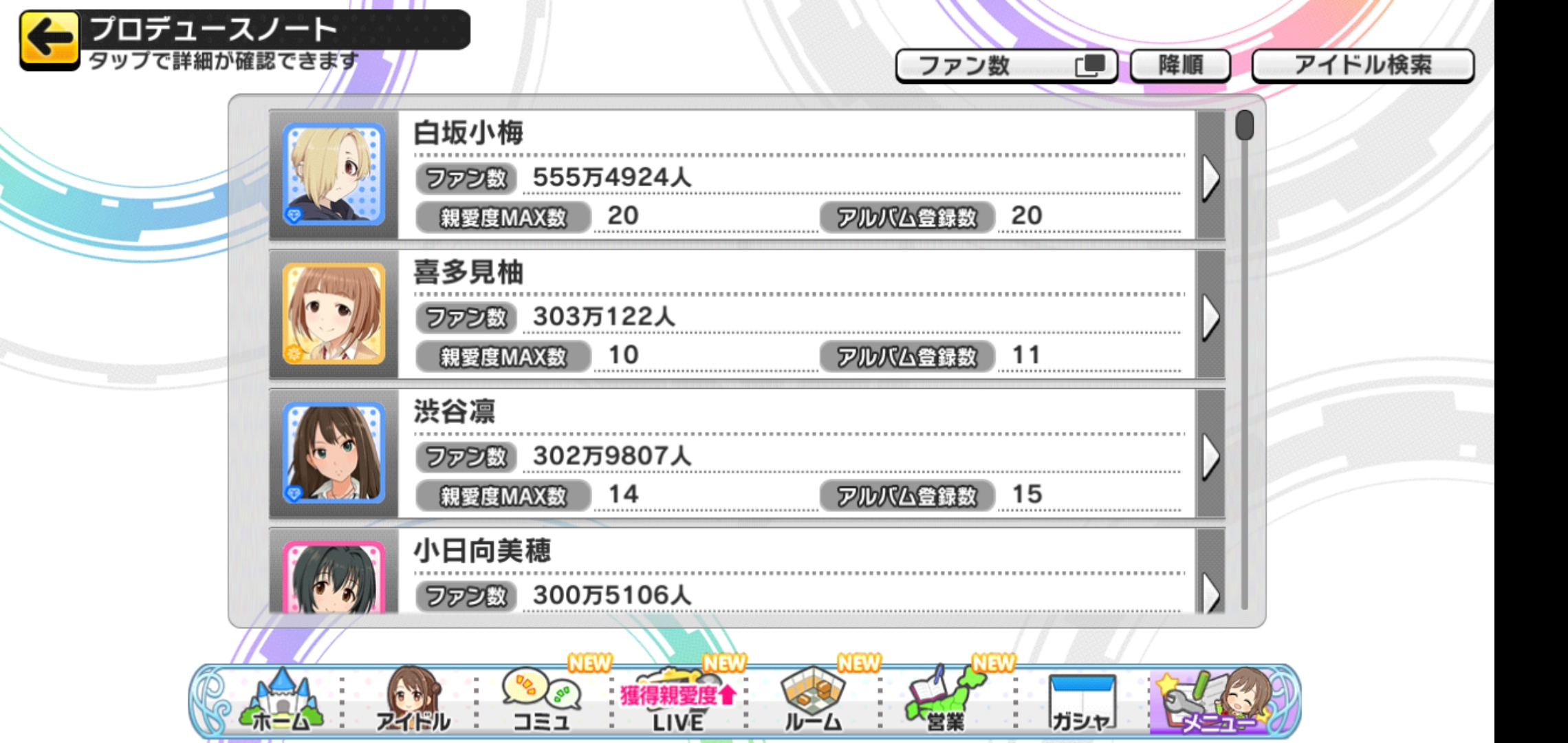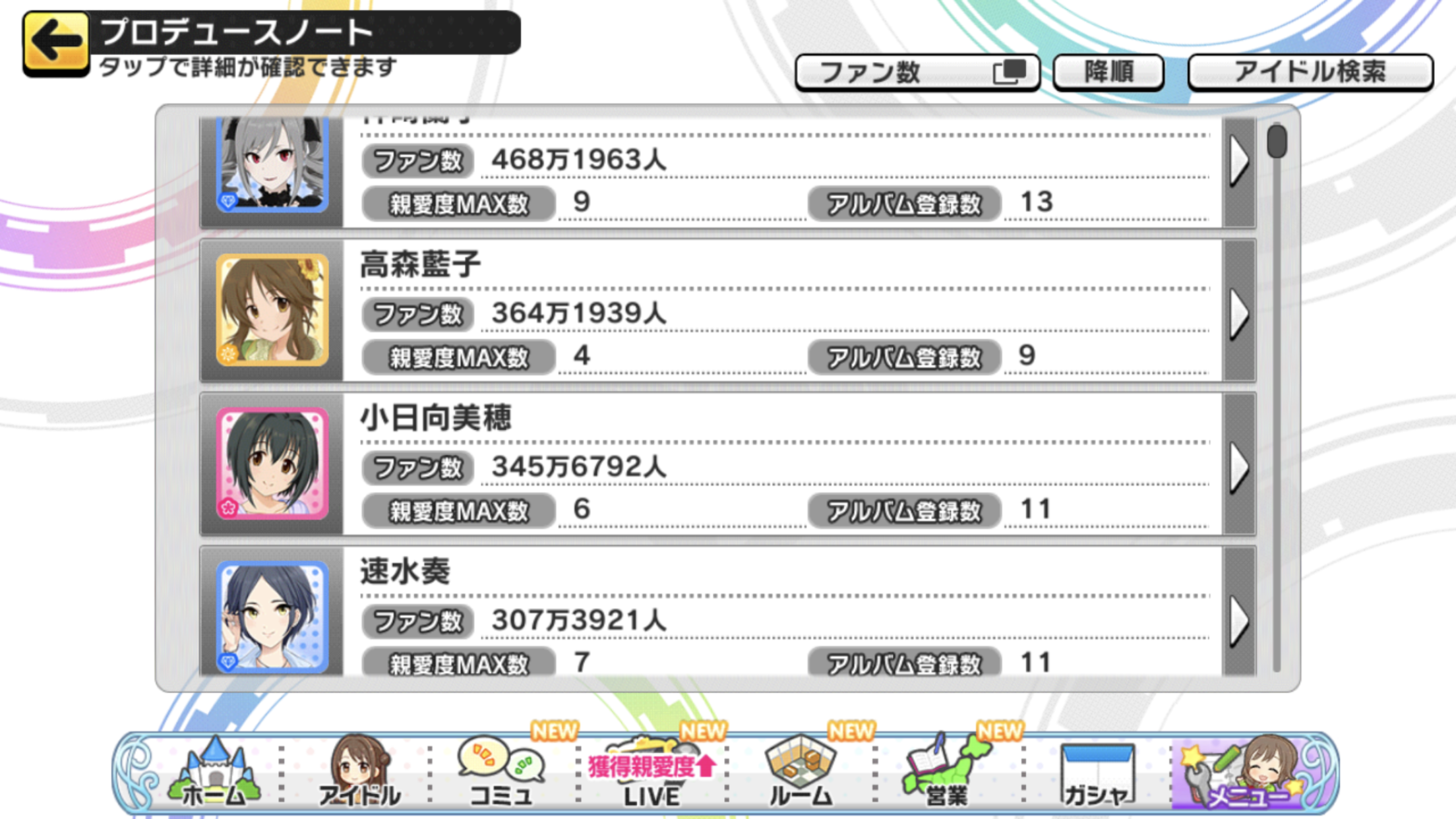 デレステのファン数2~5位から担当を当てるスレ