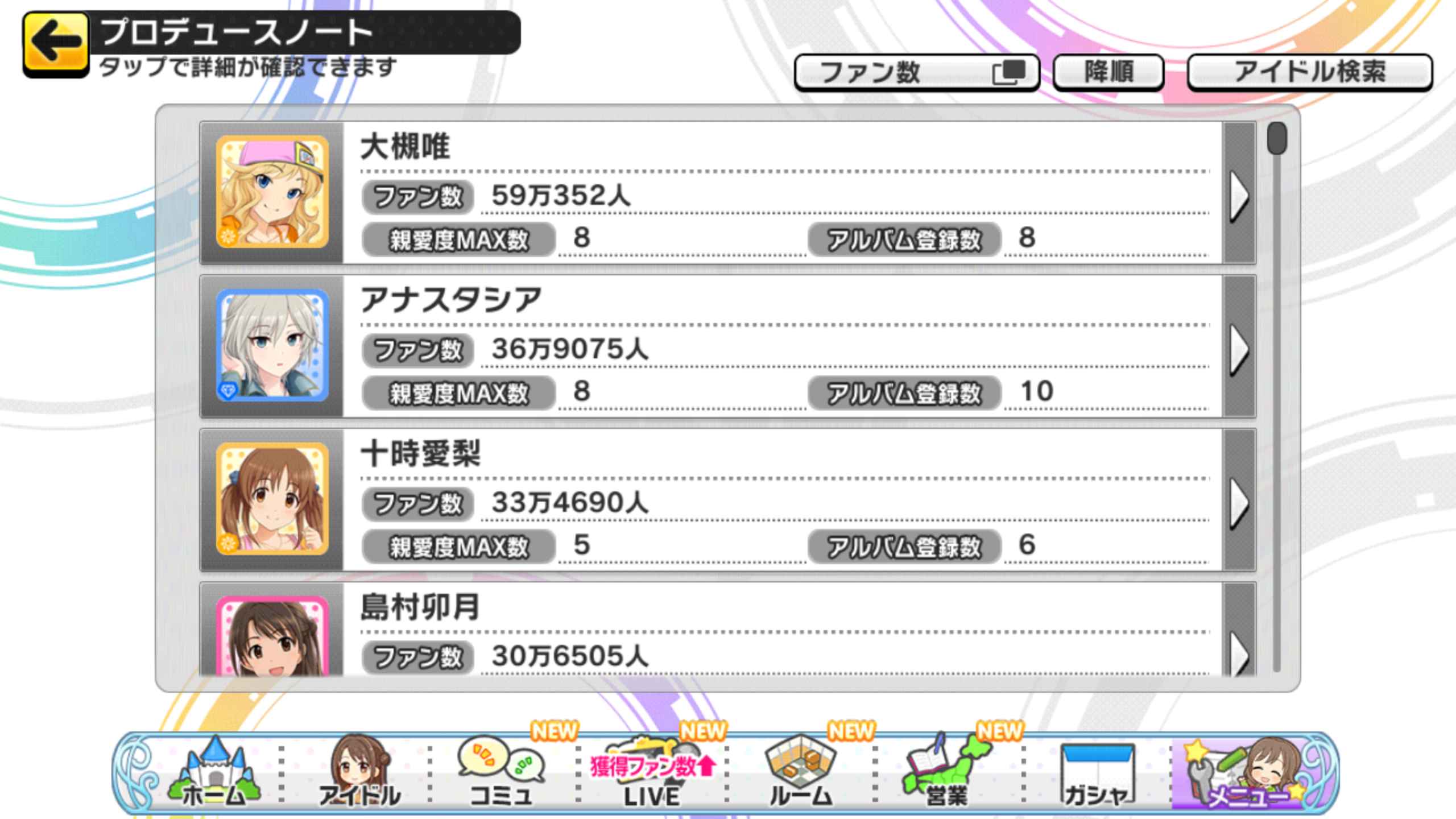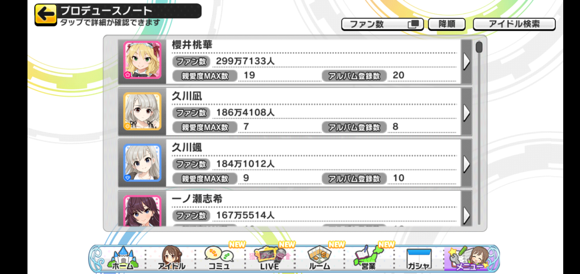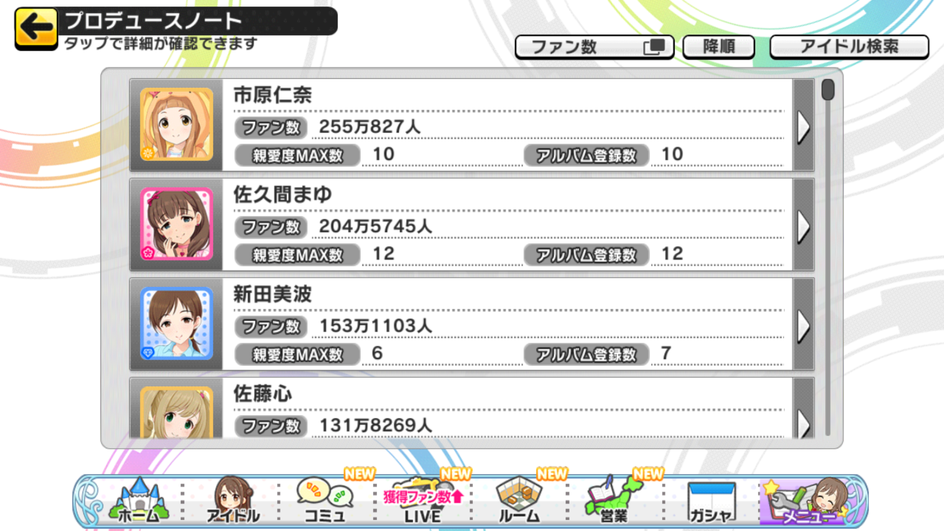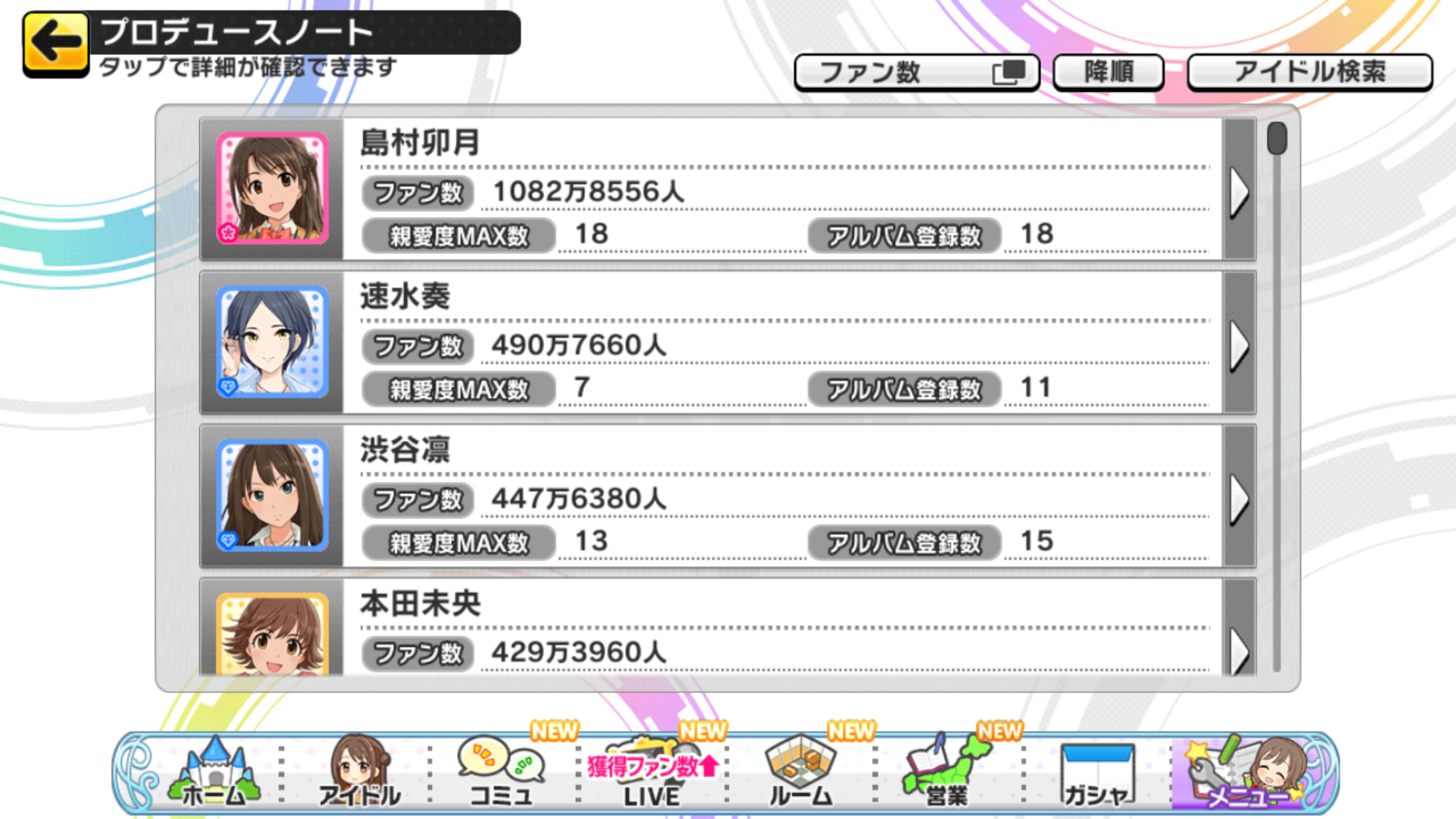 デレステのファン数2~5位から担当を当てるスレ