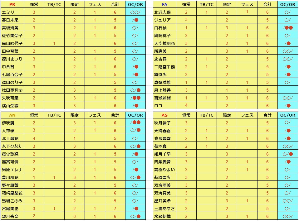 毎月開催ってことは、月末近くのタイミングで新規で夏服4人ずつ追加されるのか。