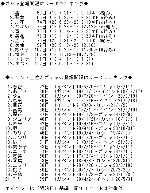 時期が固定なら、ここで出たアイドルはその月末ガシャには来ないと考えていいか。