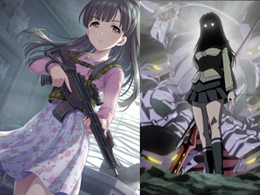 さらわれた森久保を助けに強靭な肉体で島に乗り込み敵兵めがけてマシンガンを掃射する大和亜季軍曹