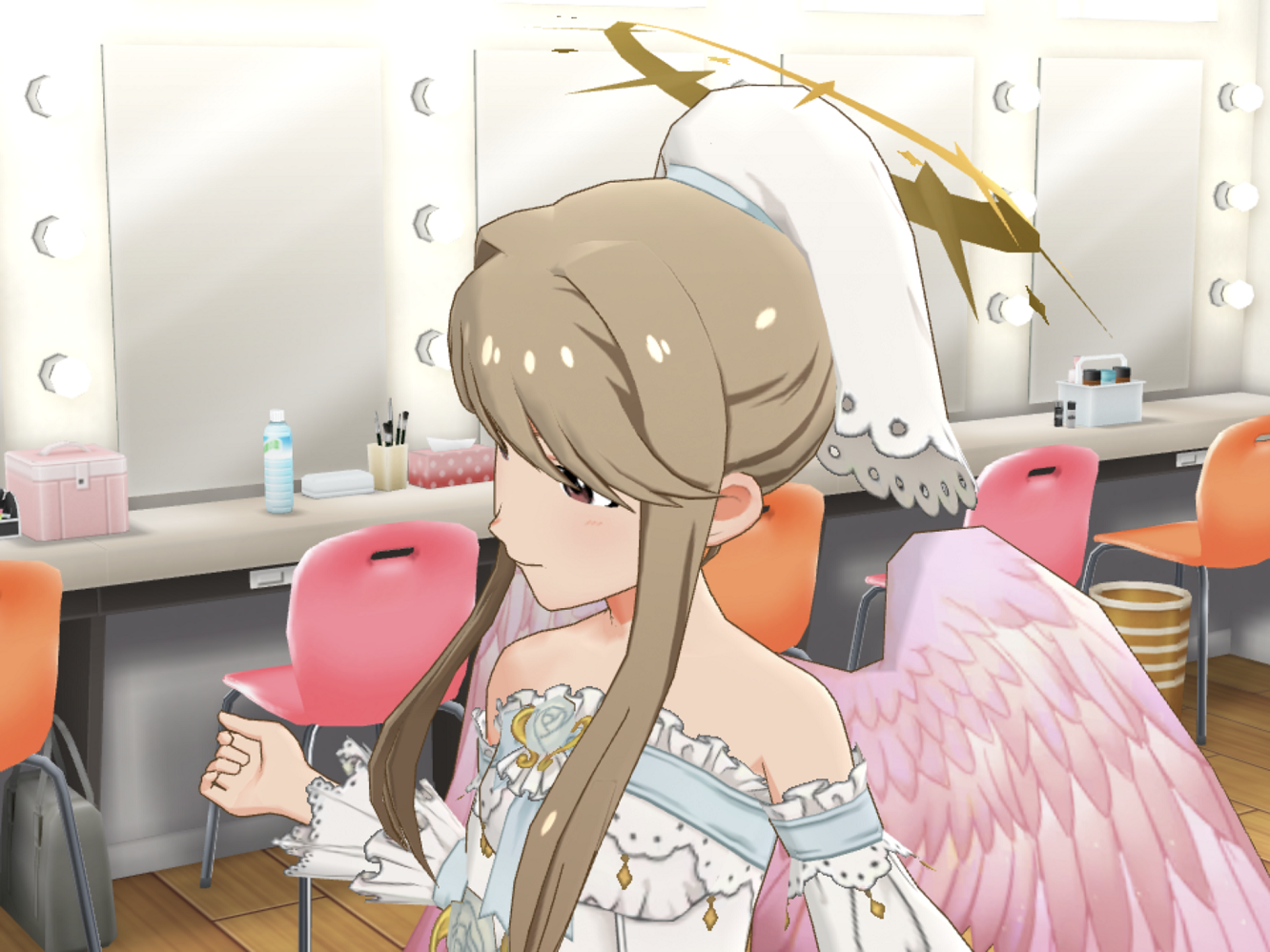 まつり(三角巾として前髪を隠せていないことよりも、あの光輪はどういう仕組みなのです? ついでに言えば翼はどうやって生えているのです?)