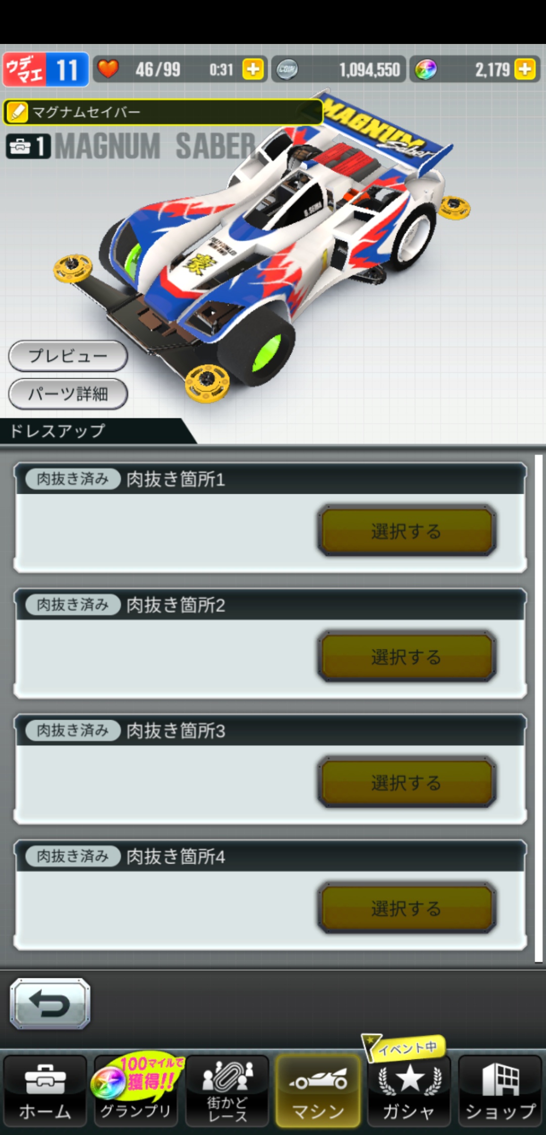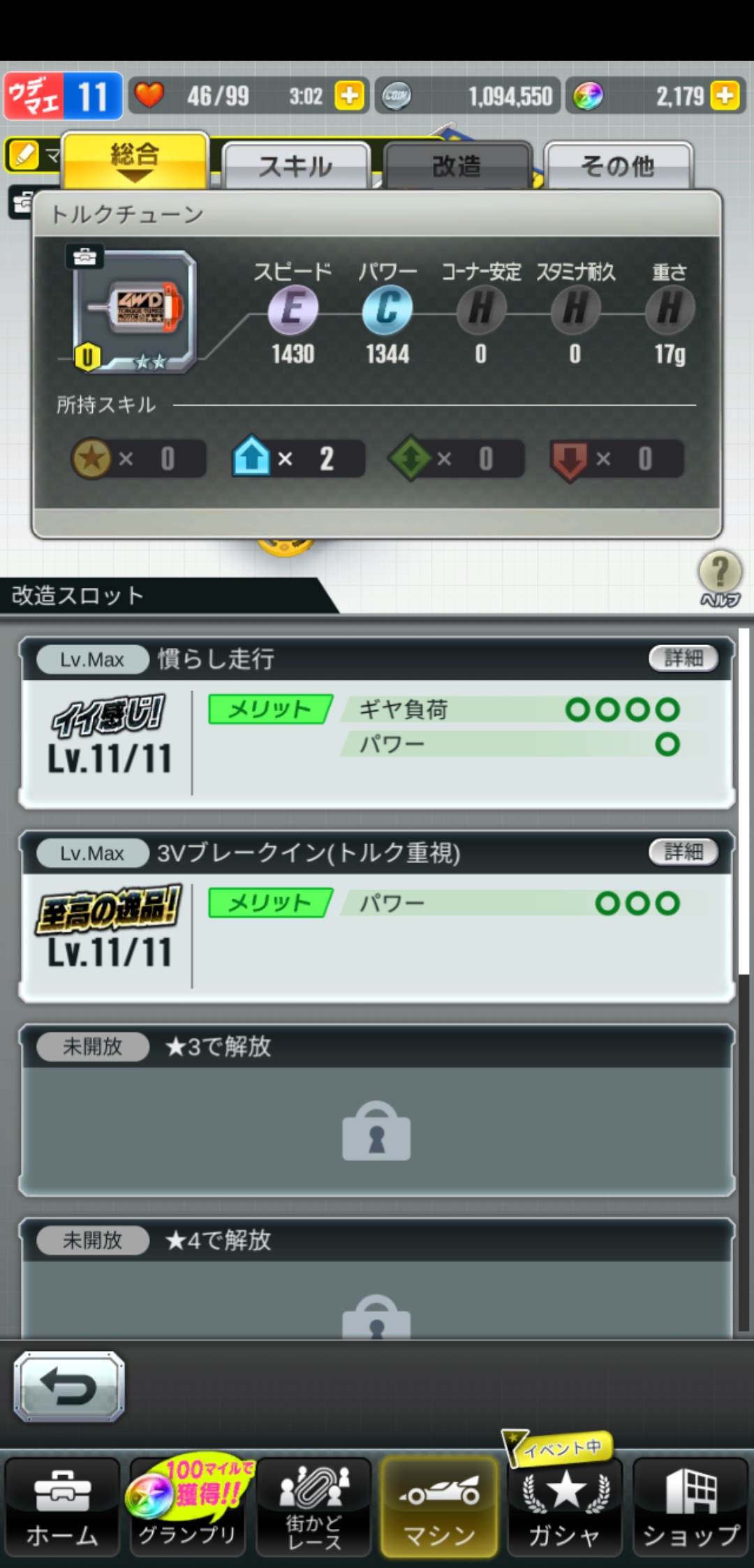 レベルが10を超えたら改造タブからパーツの改造をしていくとタイムが縮まります