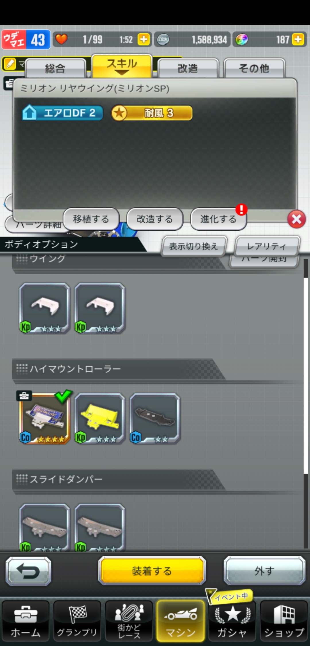 自分はフロントホイール出なかったわ、コラボで気まぐれに始めてみたが改造やらパーツいじり中々面白そうだし続けそう