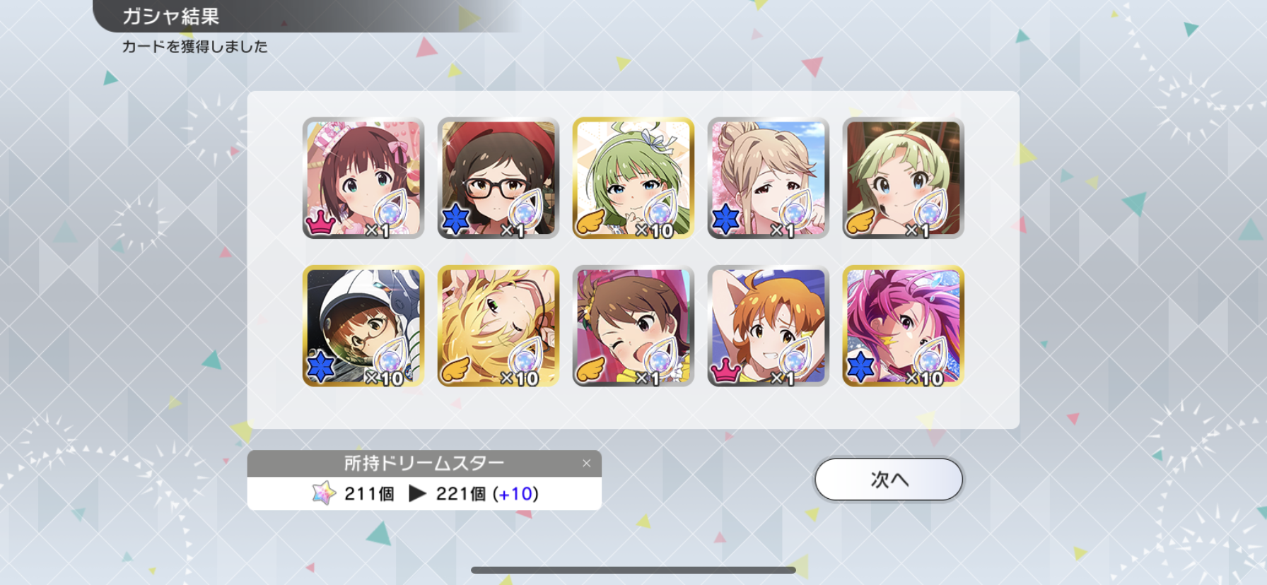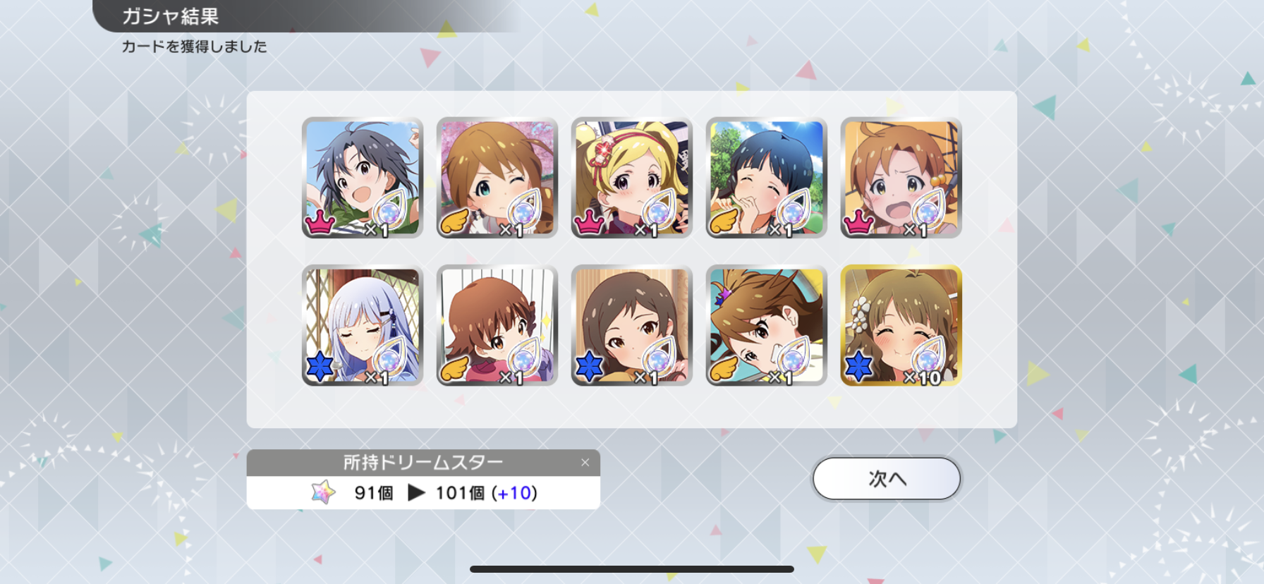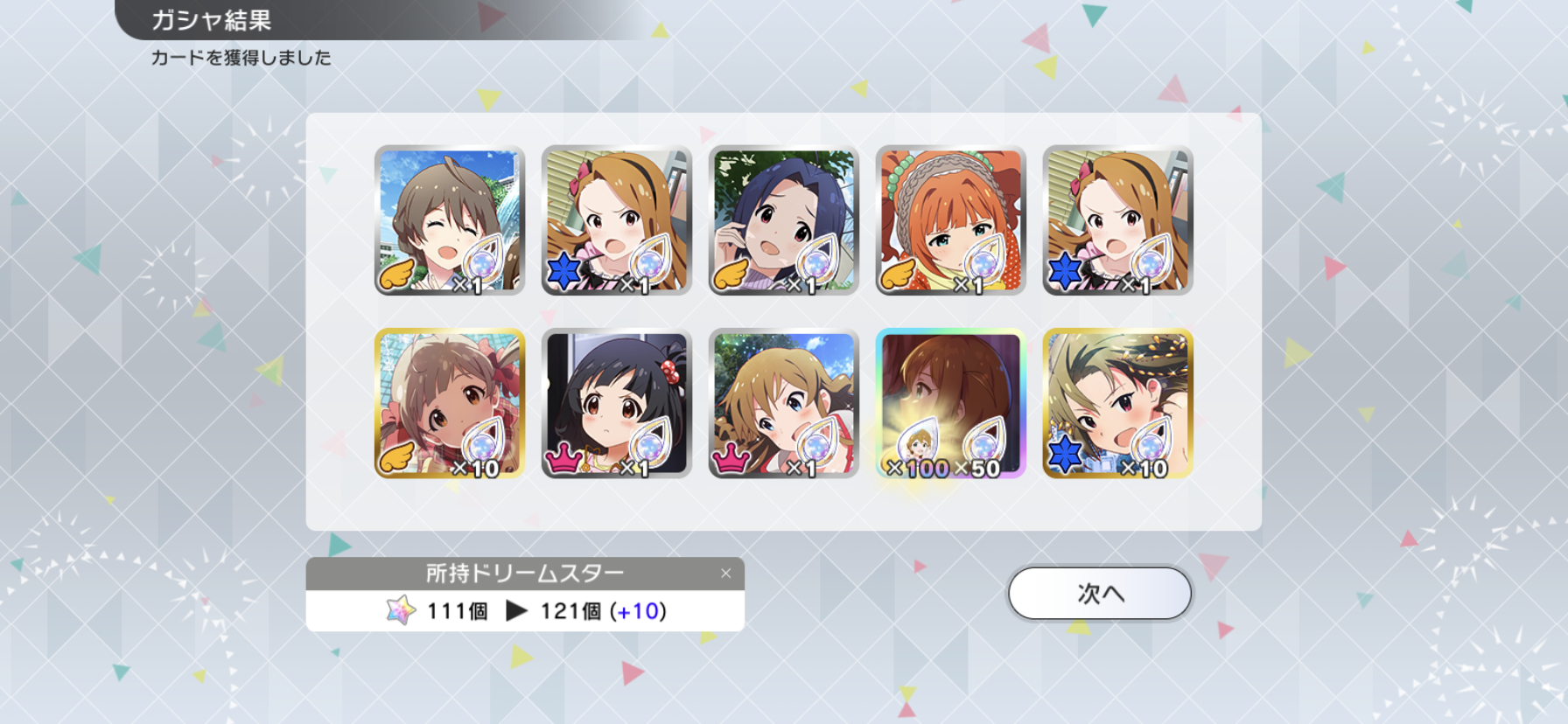 こっちは110連SSR3枚で揃ったわ