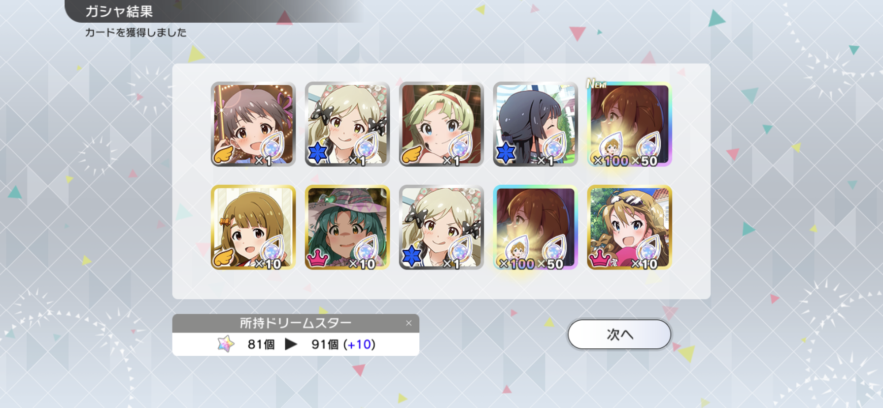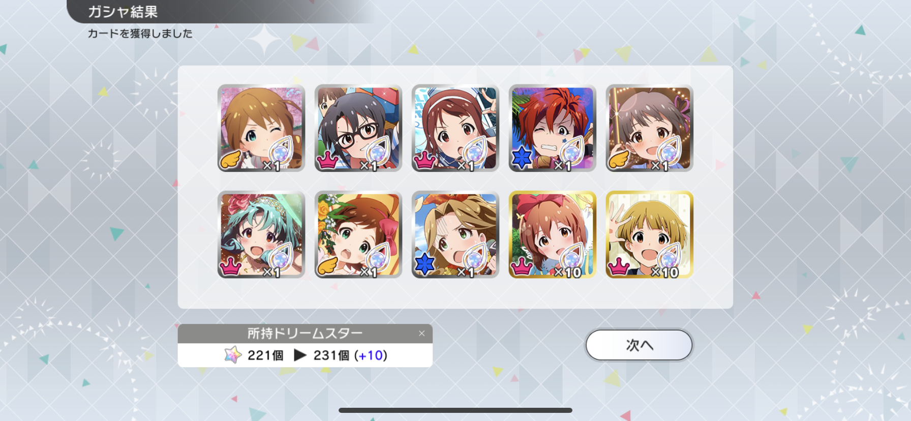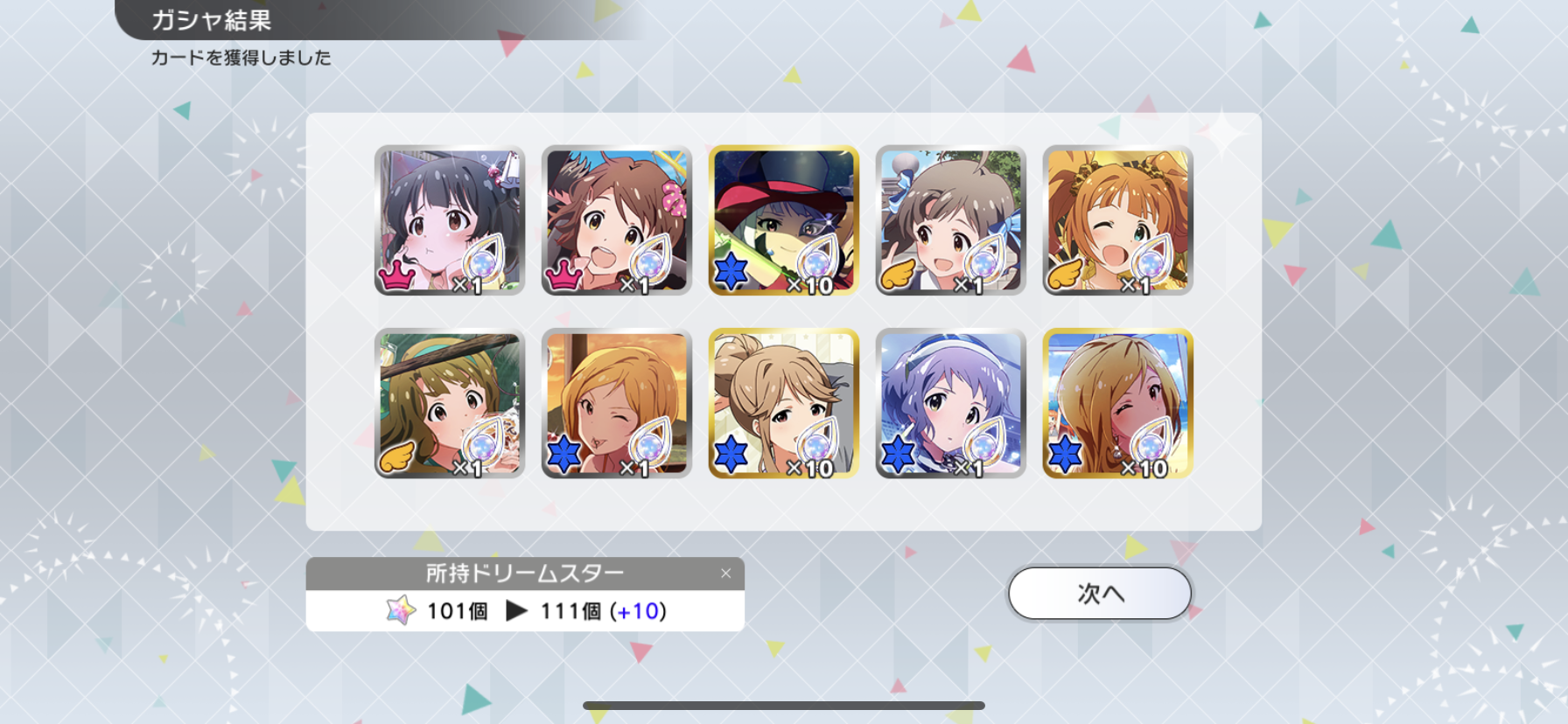 こっちは110連SSR3枚で揃ったわ