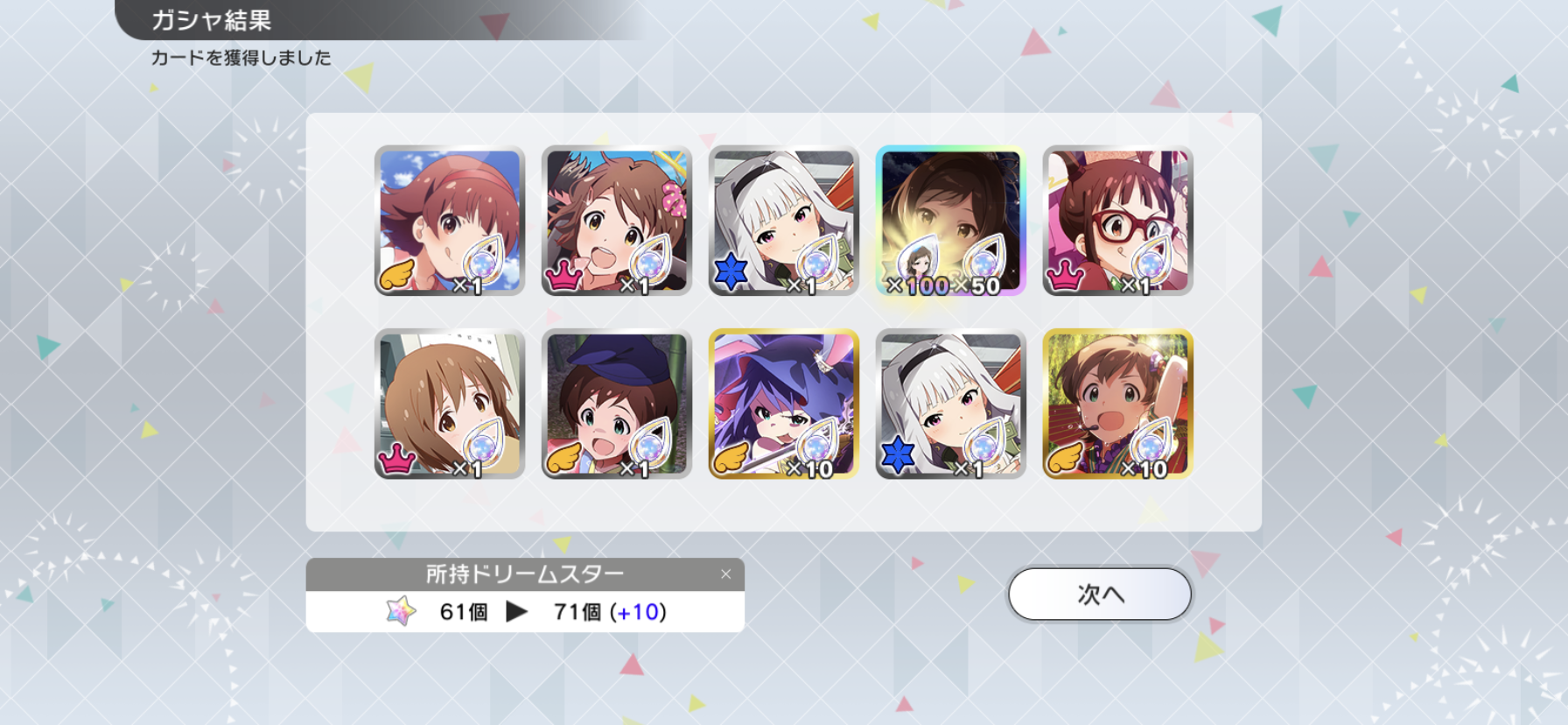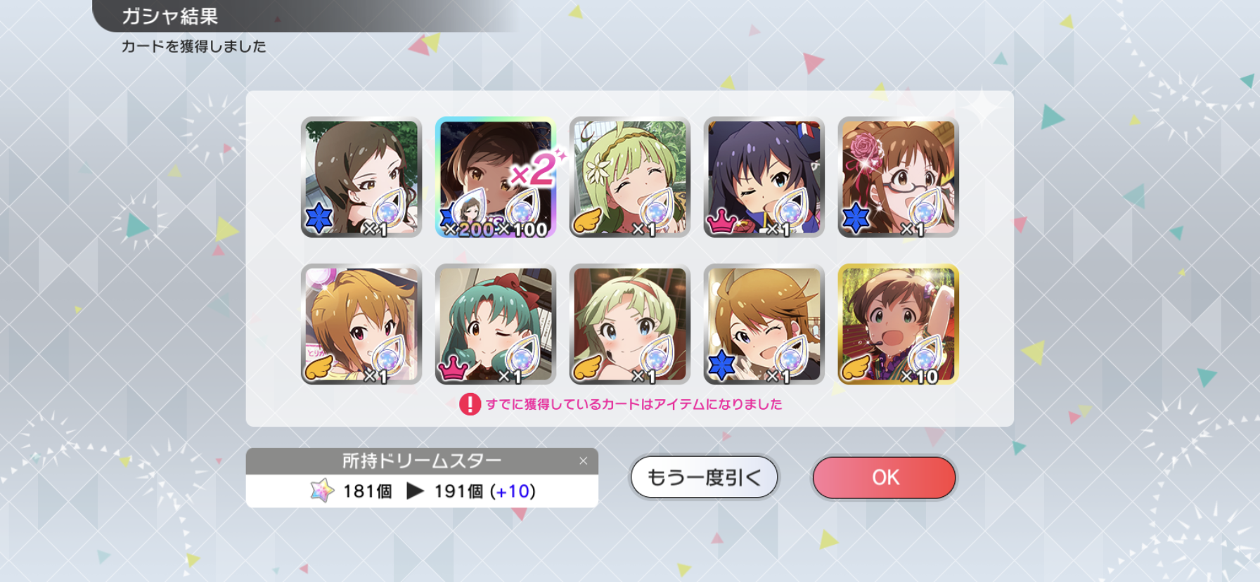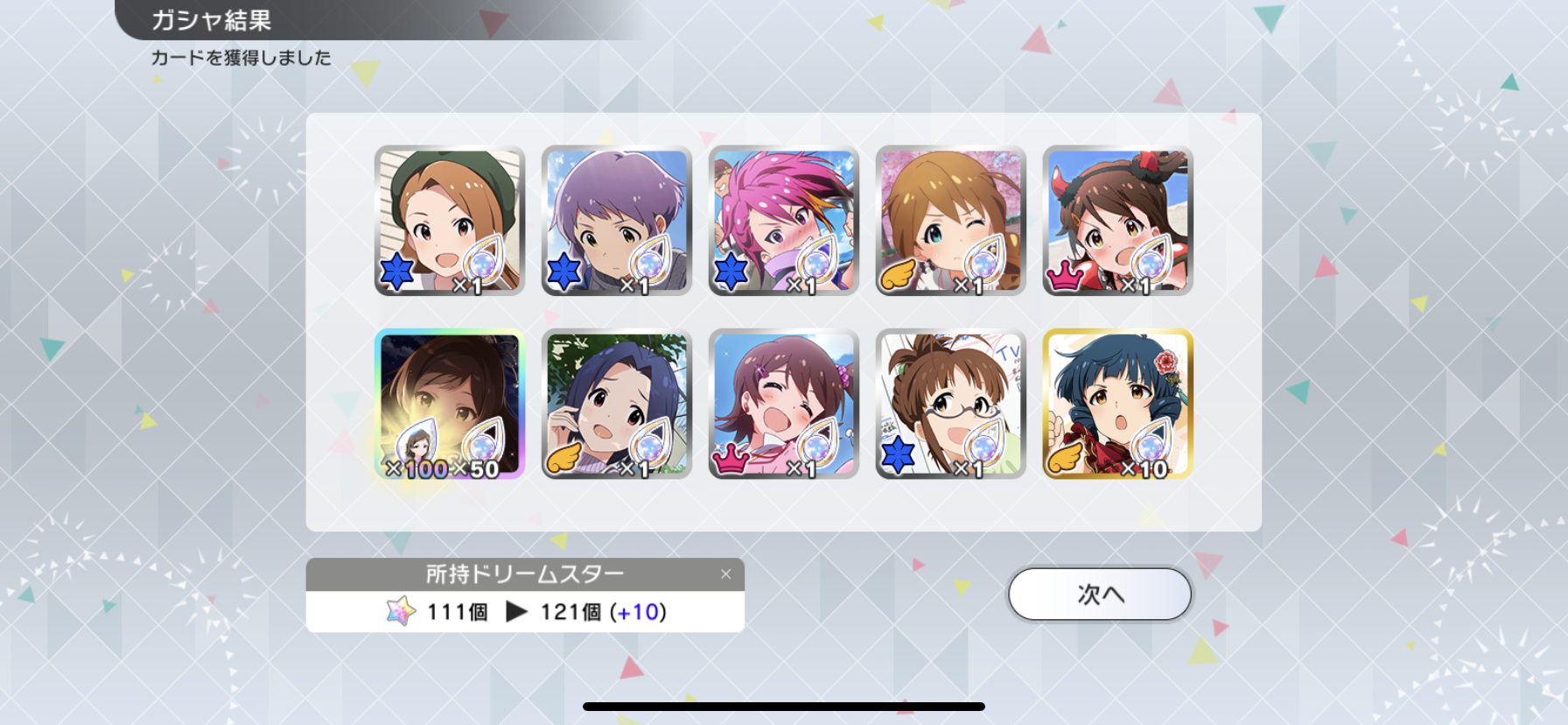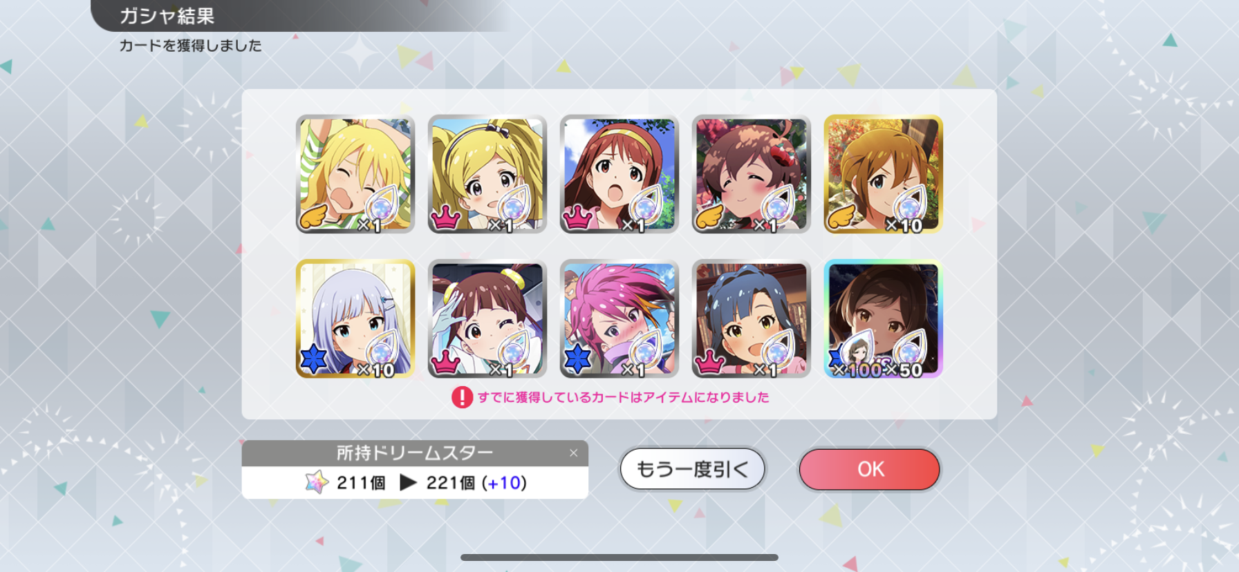流石に富豪じゃないのでメインの海美の写ってるカードと他担当の限定以外回さないようにしてます。