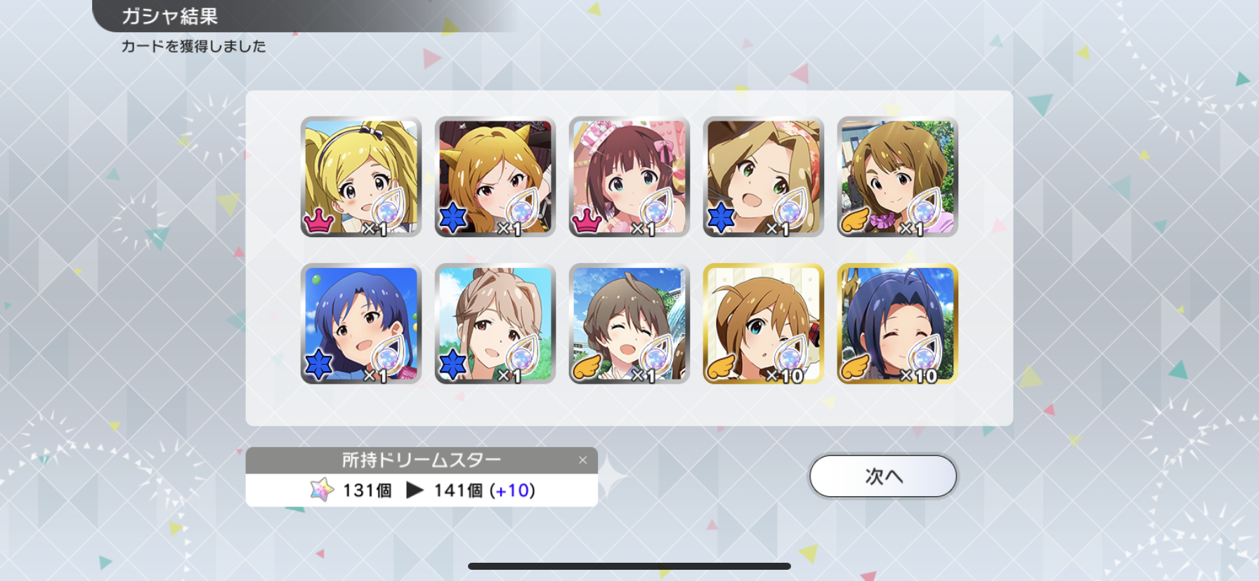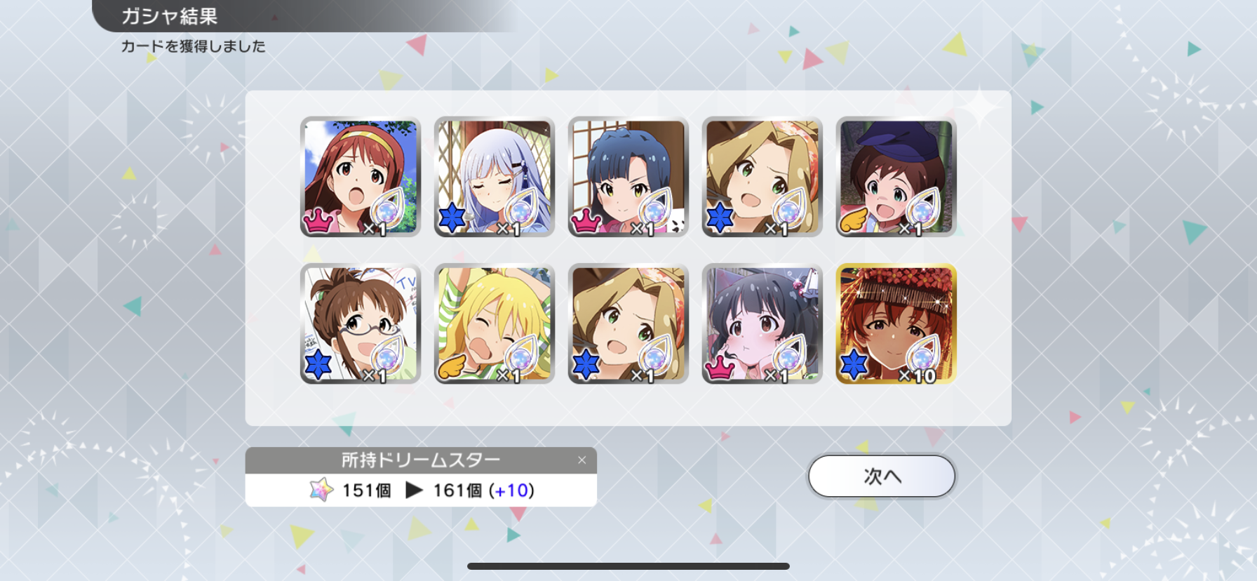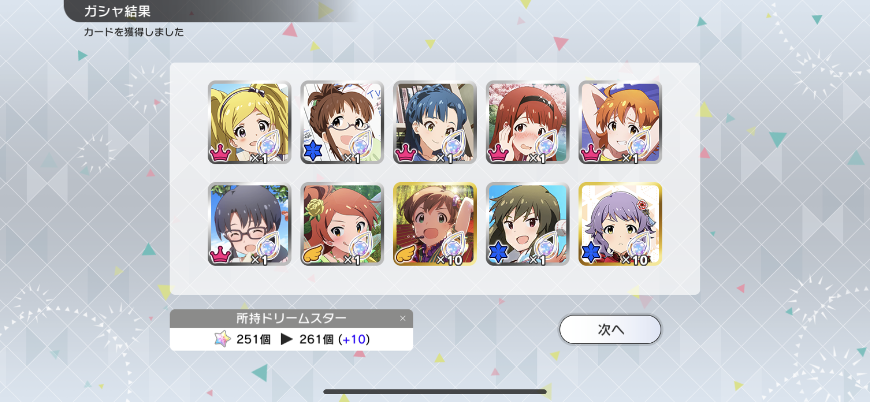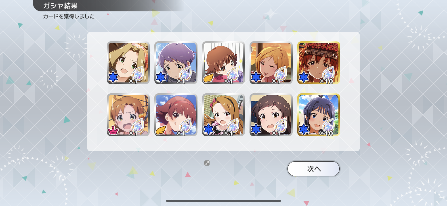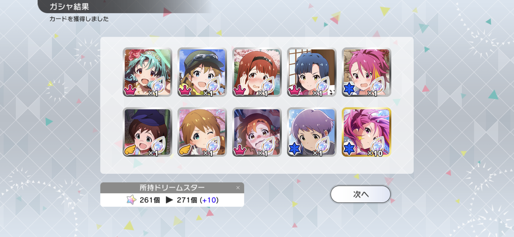 流石に富豪じゃないのでメインの海美の写ってるカードと他担当の限定以外回さないようにしてます。