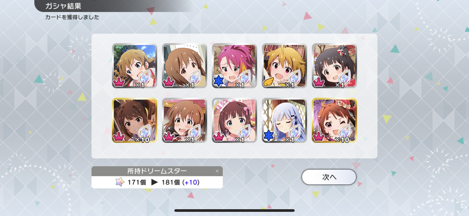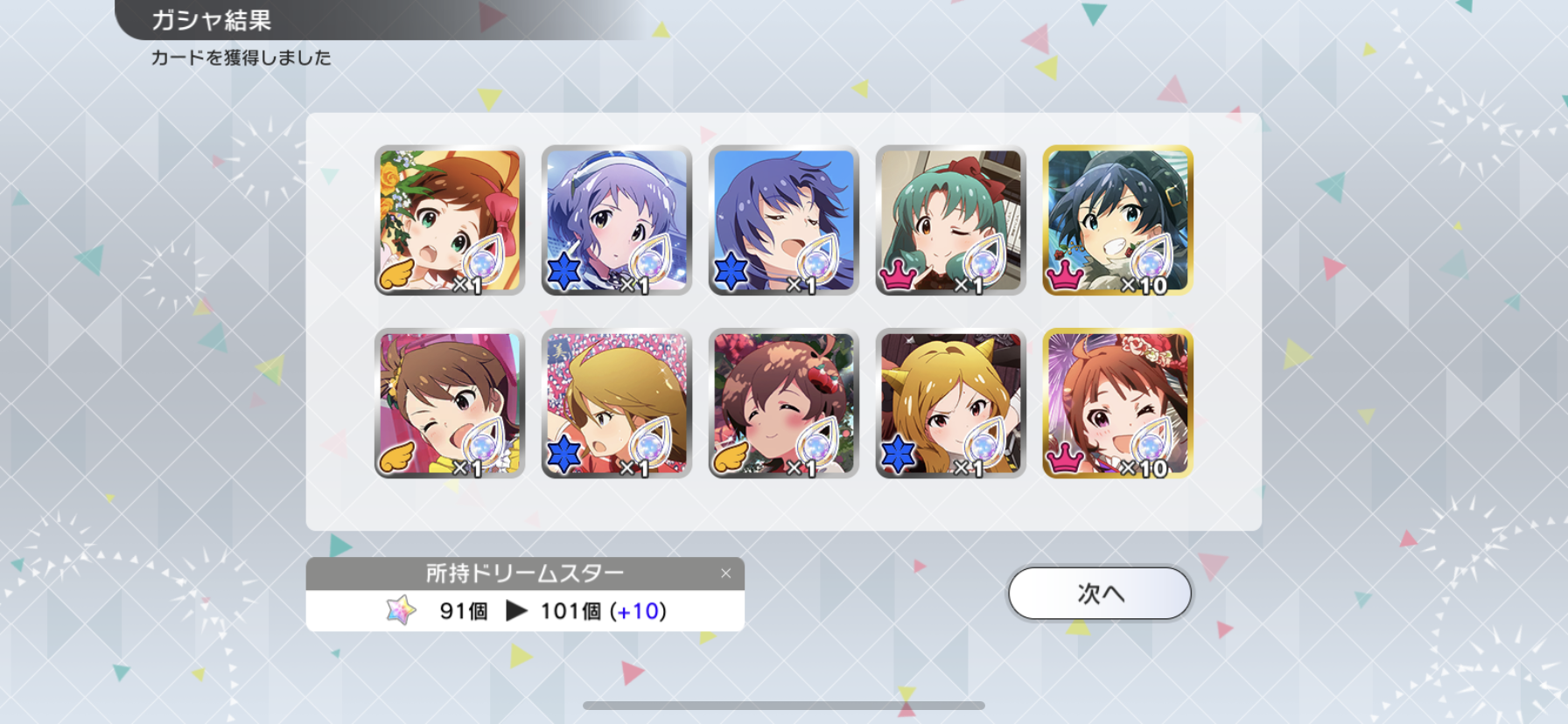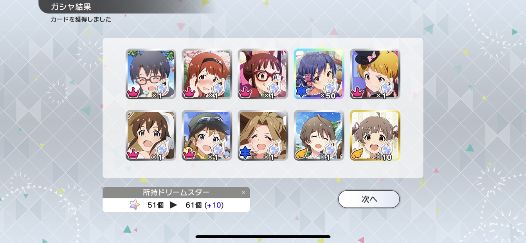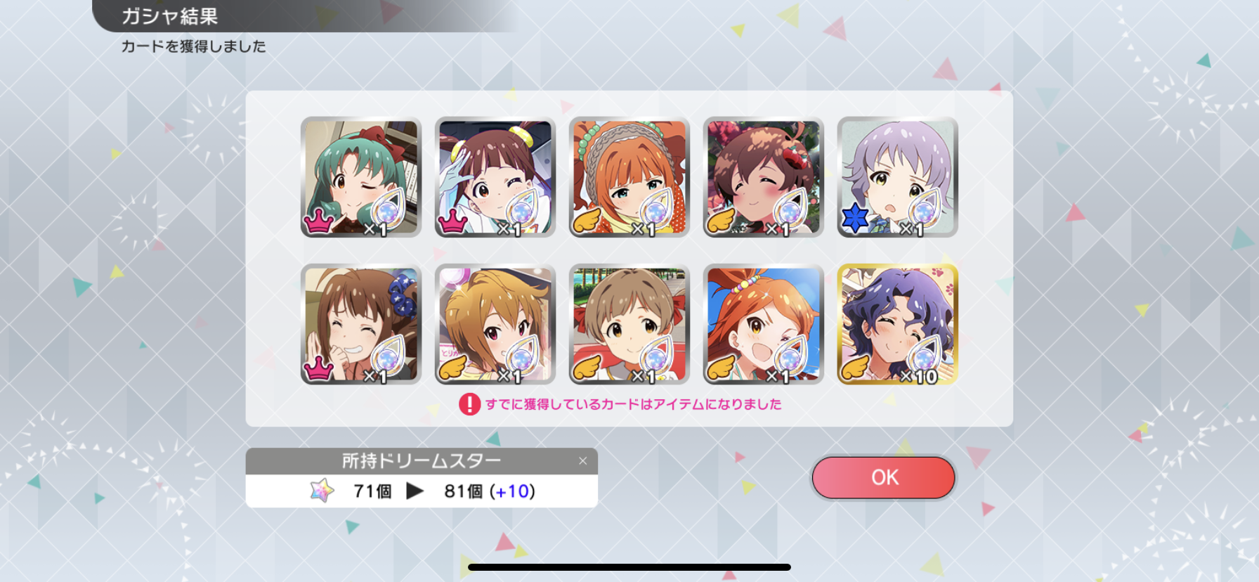 流石に富豪じゃないのでメインの海美の写ってるカードと他担当の限定以外回さないようにしてます。