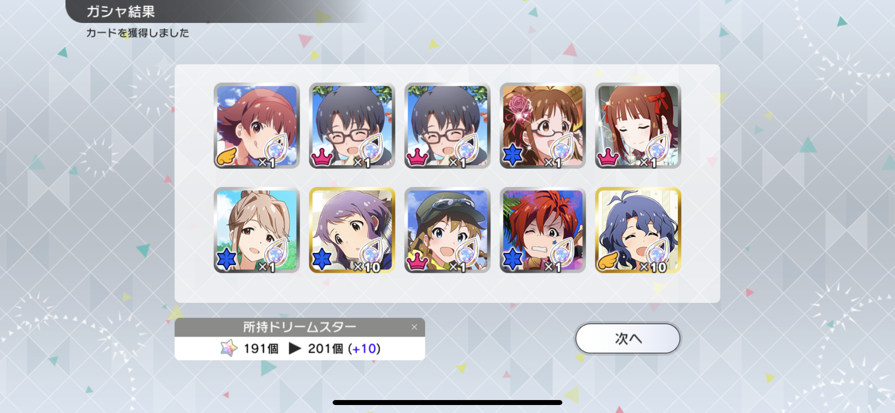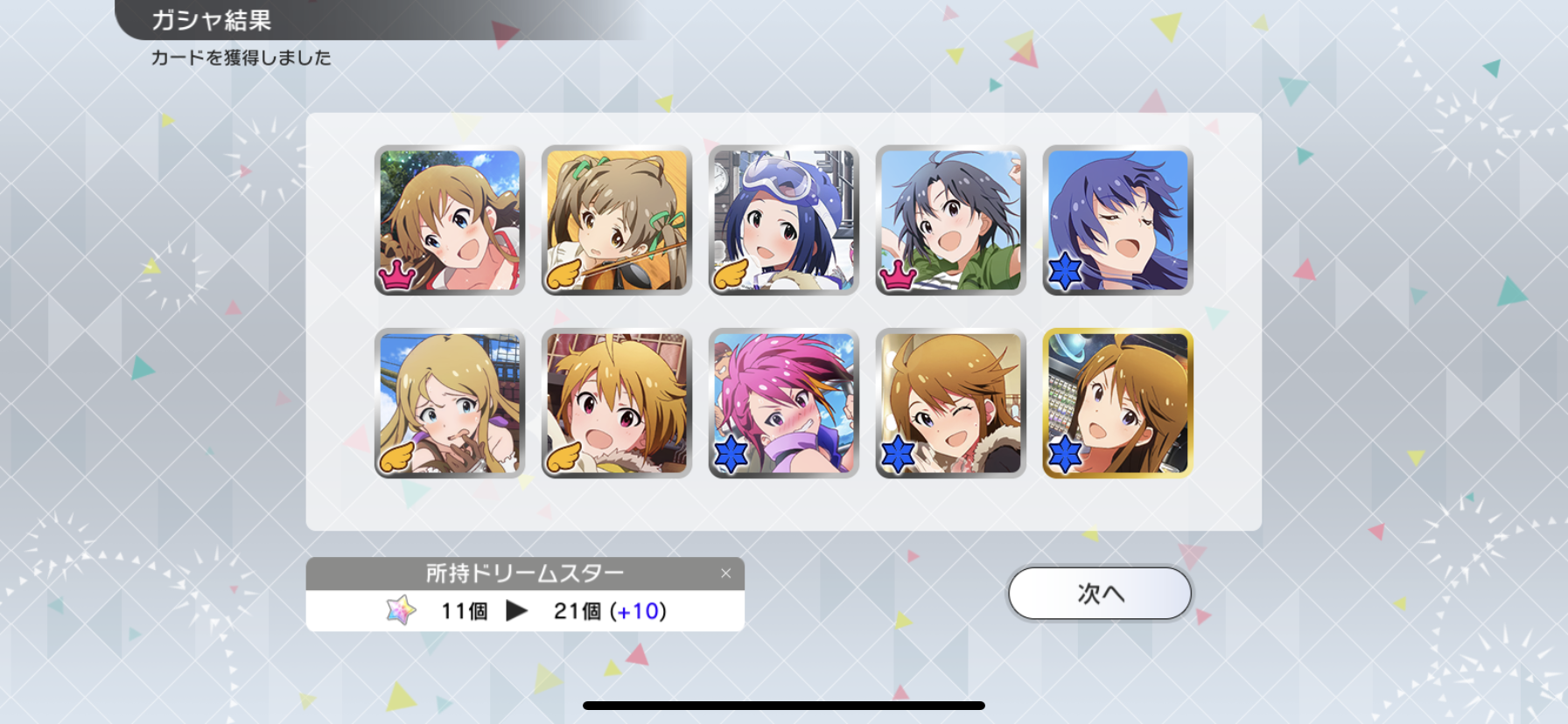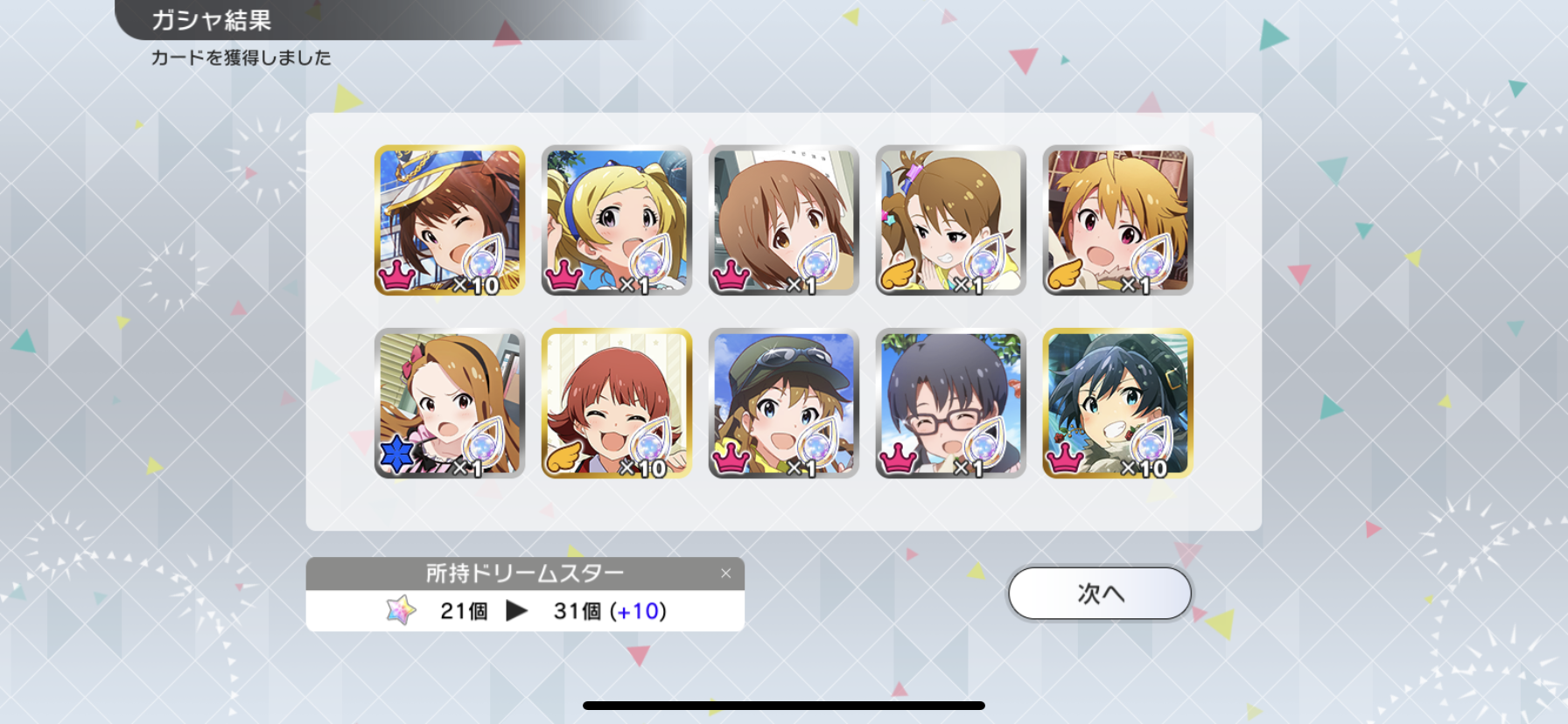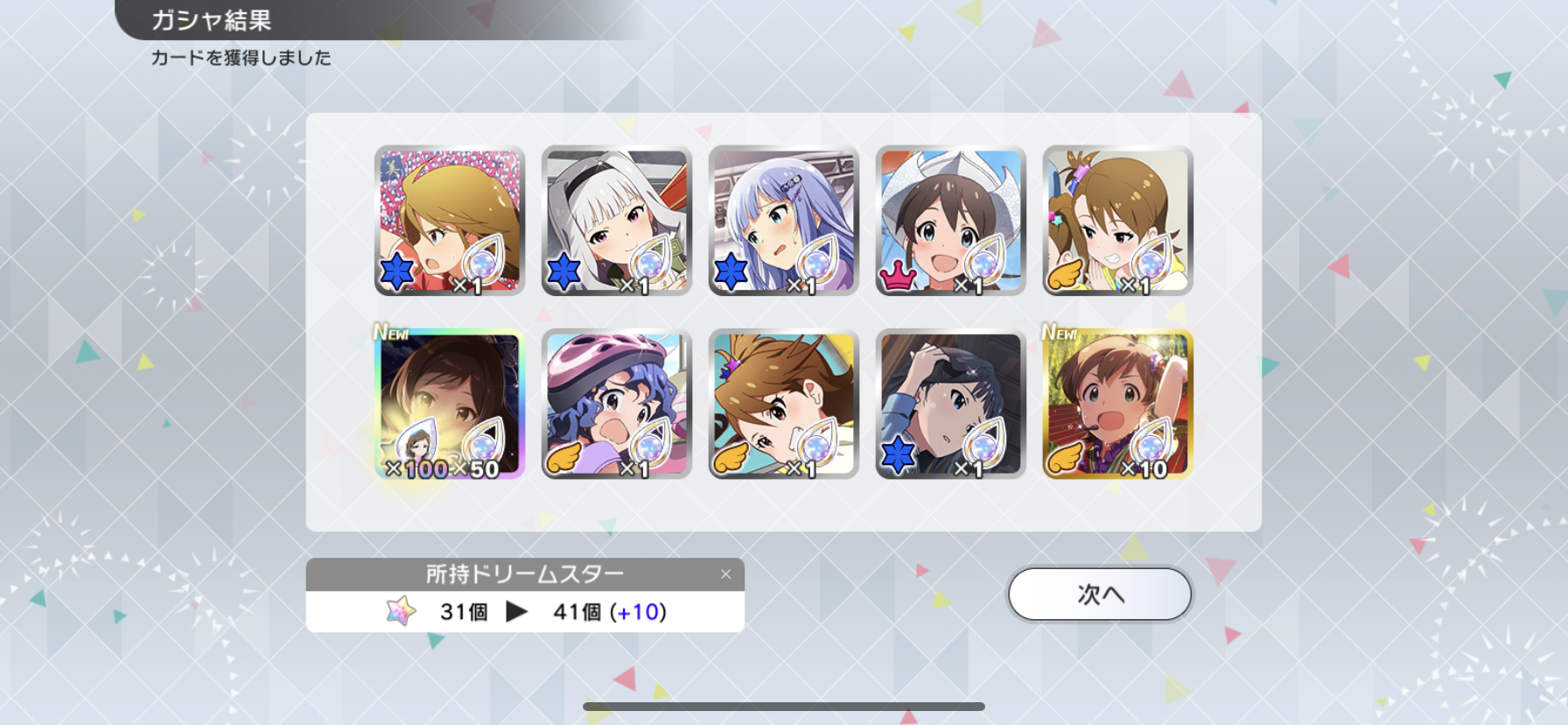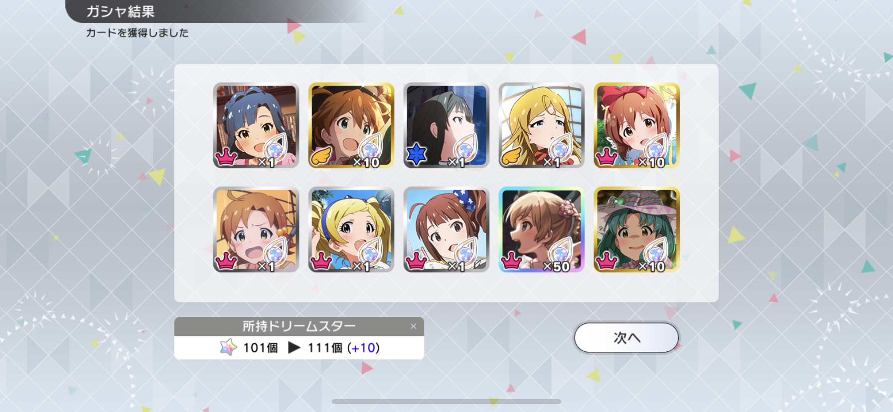 流石に富豪じゃないのでメインの海美の写ってるカードと他担当の限定以外回さないようにしてます。