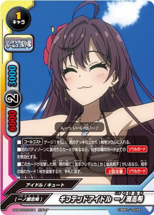 ちなみにそれを半公式でやらかしたっぽいカードゲームが存在してたり(大半のキャラの効果ががデレアニを参照にしている)