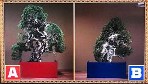 ・盆栽と菓子細工の盆栽を遠くから見比べて正解を選ぶ