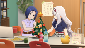 よその事務所でツリーの飾り付けを手伝うアイドル