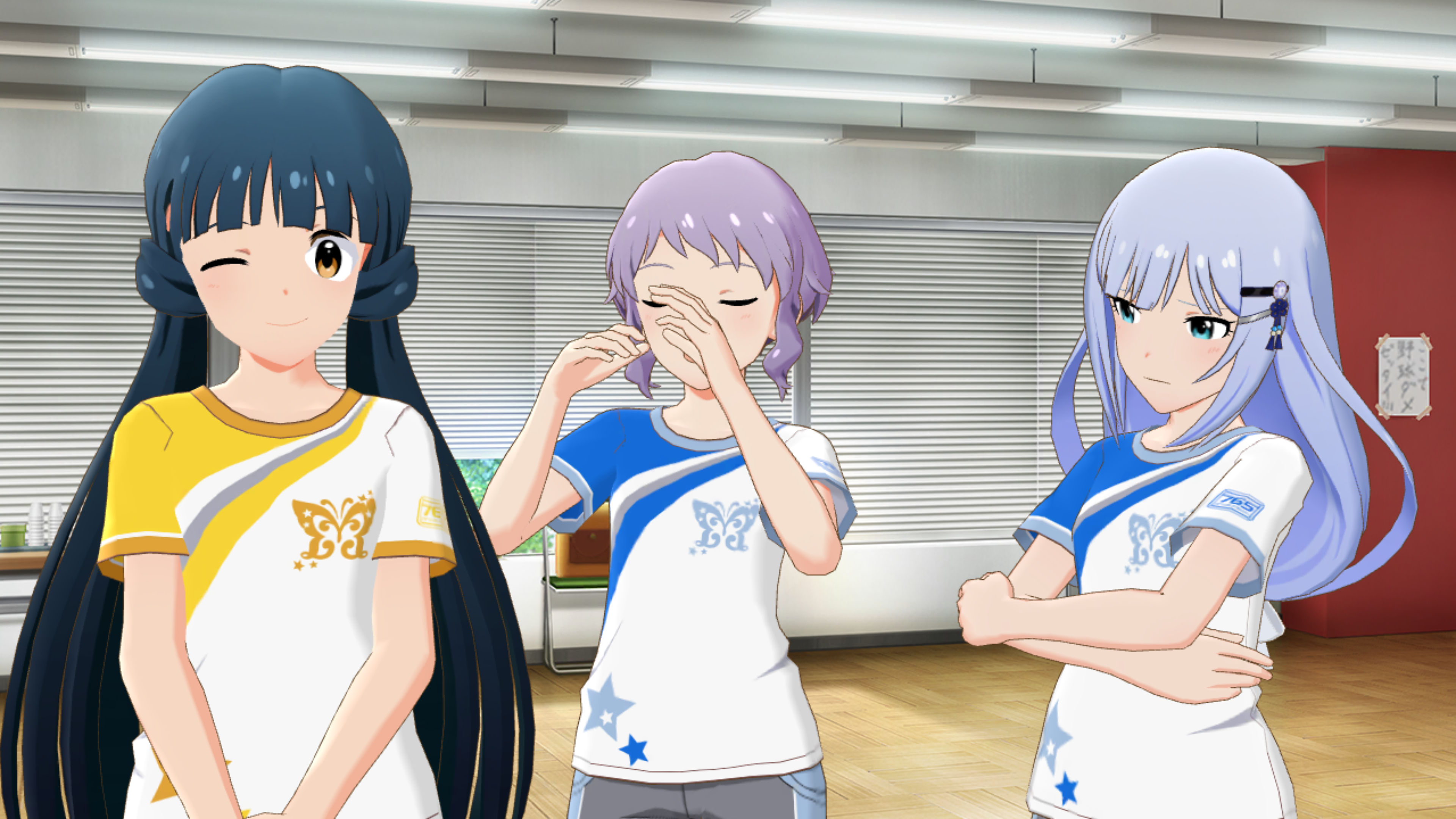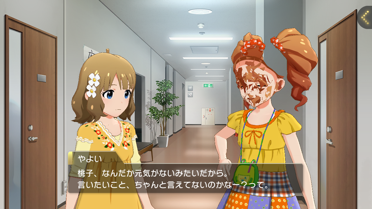 ここは通常3人でキャッキャしてるモーションなのに、左のアイドルが見えない