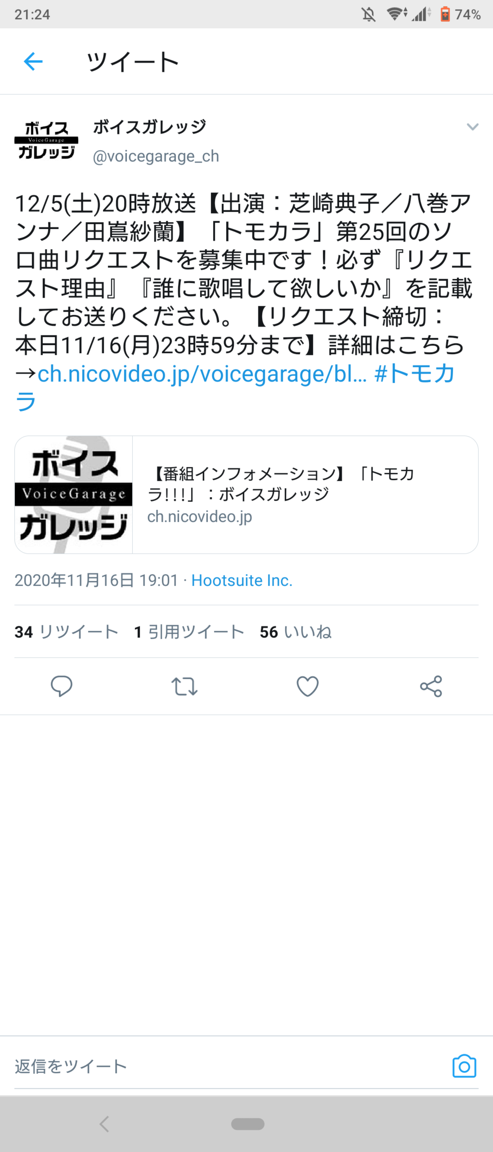 ルカは青二の川口莉奈って人でついさっきTwitter開設したみたい